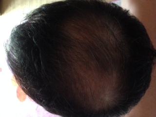 ich habe einen Tonsur mit lichtem Haar und ein wenig Geheimratsecken.