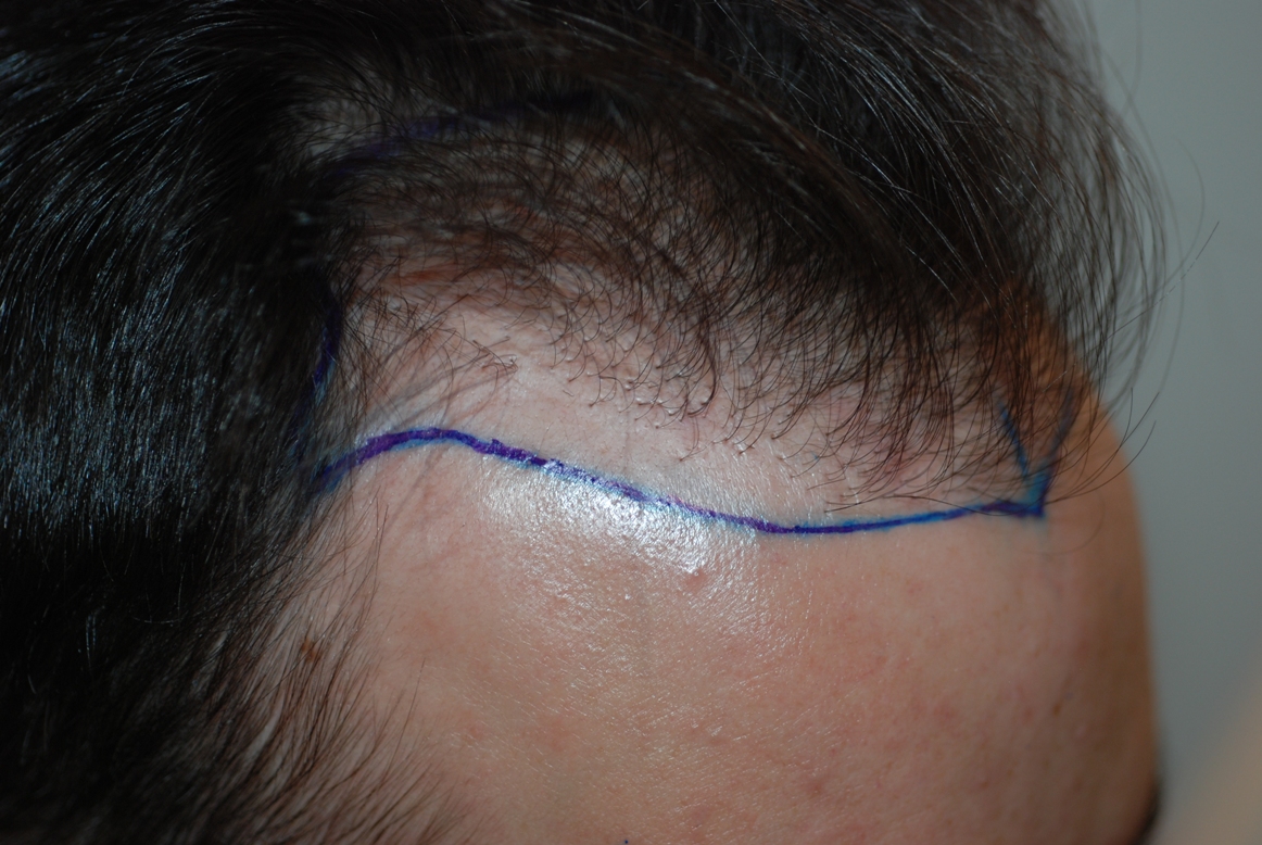 Im Gespräch mit dem Arzt wurde unter anderem meine Donorbeschaffenheit analysiert und die Dichte gemessen. Der Arzt zeichnete aus dem Gefühl heraus eine erste vorläufige Haarlinie ein, welche mit Hilfe einer Schablone, die den Abstand vom obersten Punkt der Augenbrauen zur zukünftigen Haarlinie misst, und unter Berücksichtigung meiner Gesichtskonturen noch verfeinert wurde.