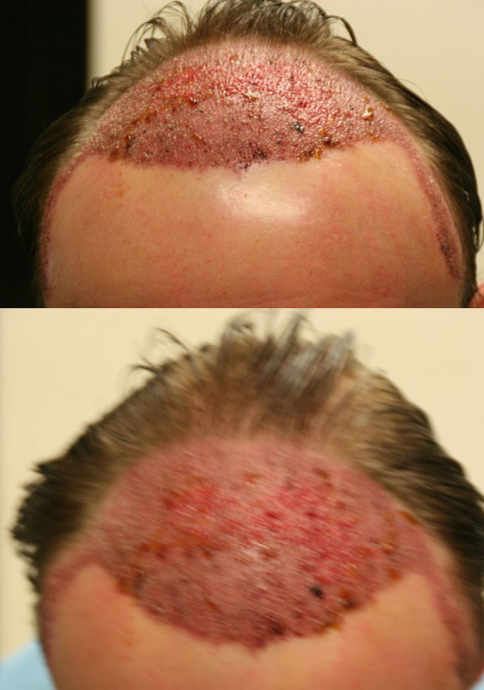 Zurück in Deutschland, wurden mir nach ca. 10 Tagen die Fäden gezogen. Nach ca. 2 - 3 Wochen fielen die implantierten Haare wieder aus und die Naht war schon nach 4 Wochen sehr gut verheilt (nur noch ein geröteter Strich zu sehen). Leider habe ich den Heilungsprozess nicht mit Bildern dokumentiert. Nach ca. 3 Monaten wuchsen die ersten Haare, nach 6 Monaten hatte ich schon gutes Ergebnis...