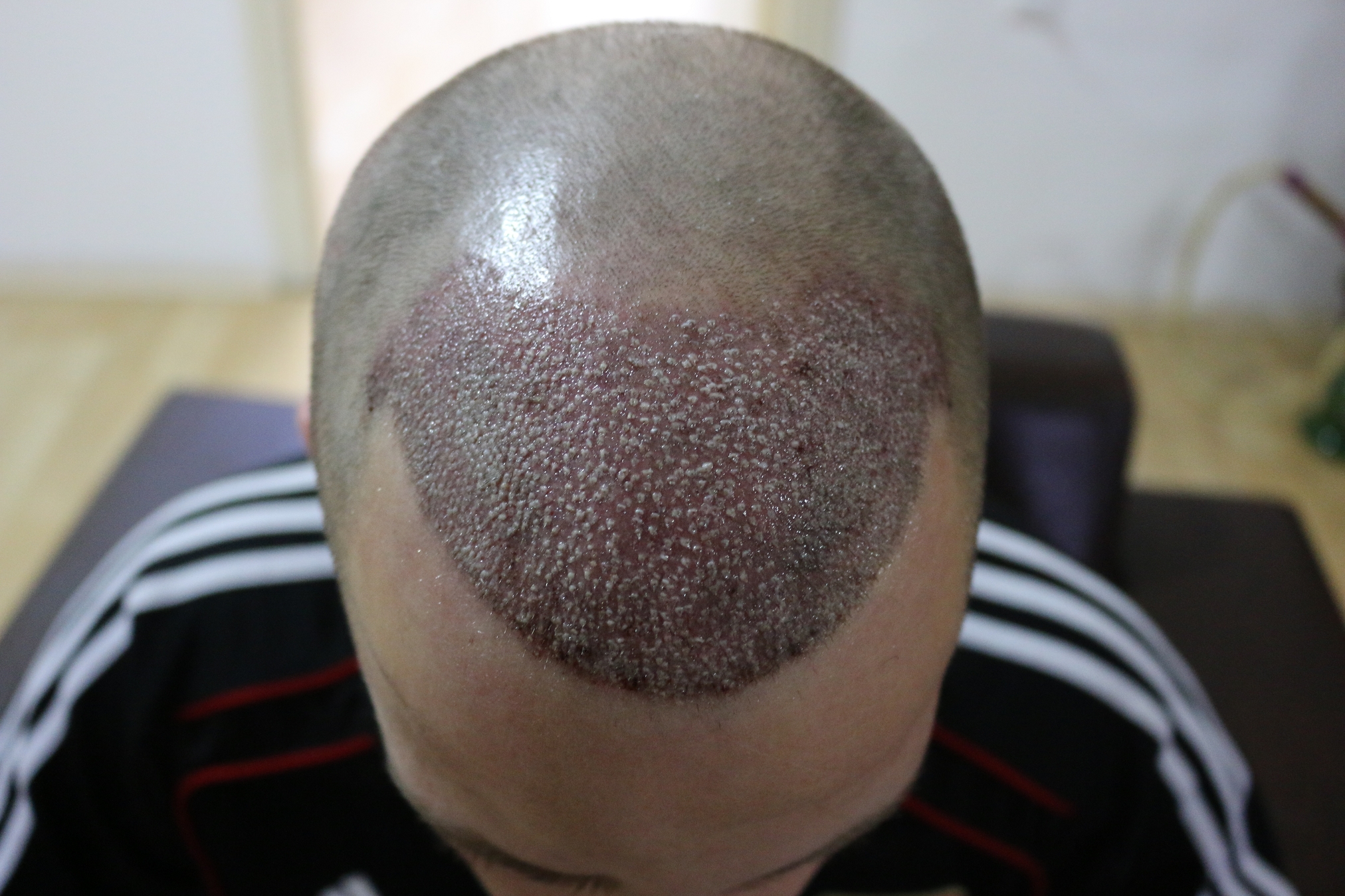 Dr. khan übernahm dann sofort das Einsetzen der gerade entnommenen Grafts. Begonnen hatten wir ca. Um 10:30 um 14:15 war ich dann fertig und es war Zeit für Mittagspause. Um 15:00 ging es weiter mit Entnahme durch Dr. Özgür. Geplant waren weitere 400 Grafts am Ende wurden es 478, die direkt von Dr..Khan eingesetzt wurden.um 18:30 war ich buchstäblich fertig.