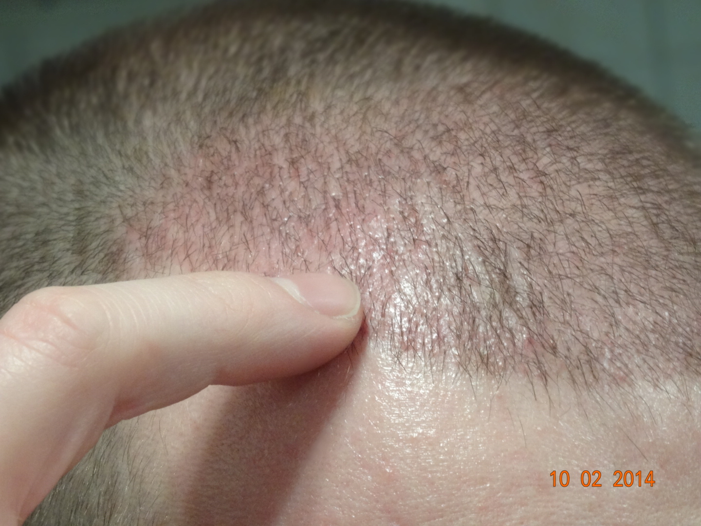 Kann es sein, dass Du irgendeine Psoriasis oder allergische Reaktionen hast? Hast Du bereits früher an anderer Stelle Hautprobleme gehabt? Ich vermute mal, dass Du noch kein Minox nach der HT nimmst, oder? Das kann durchaus zu Problemen führen. Ich hatte vor meiner allerersten HT Minox über 15 Jahre genommen und dauerhafte Probleme wegen des Propylenglykolgehalts.