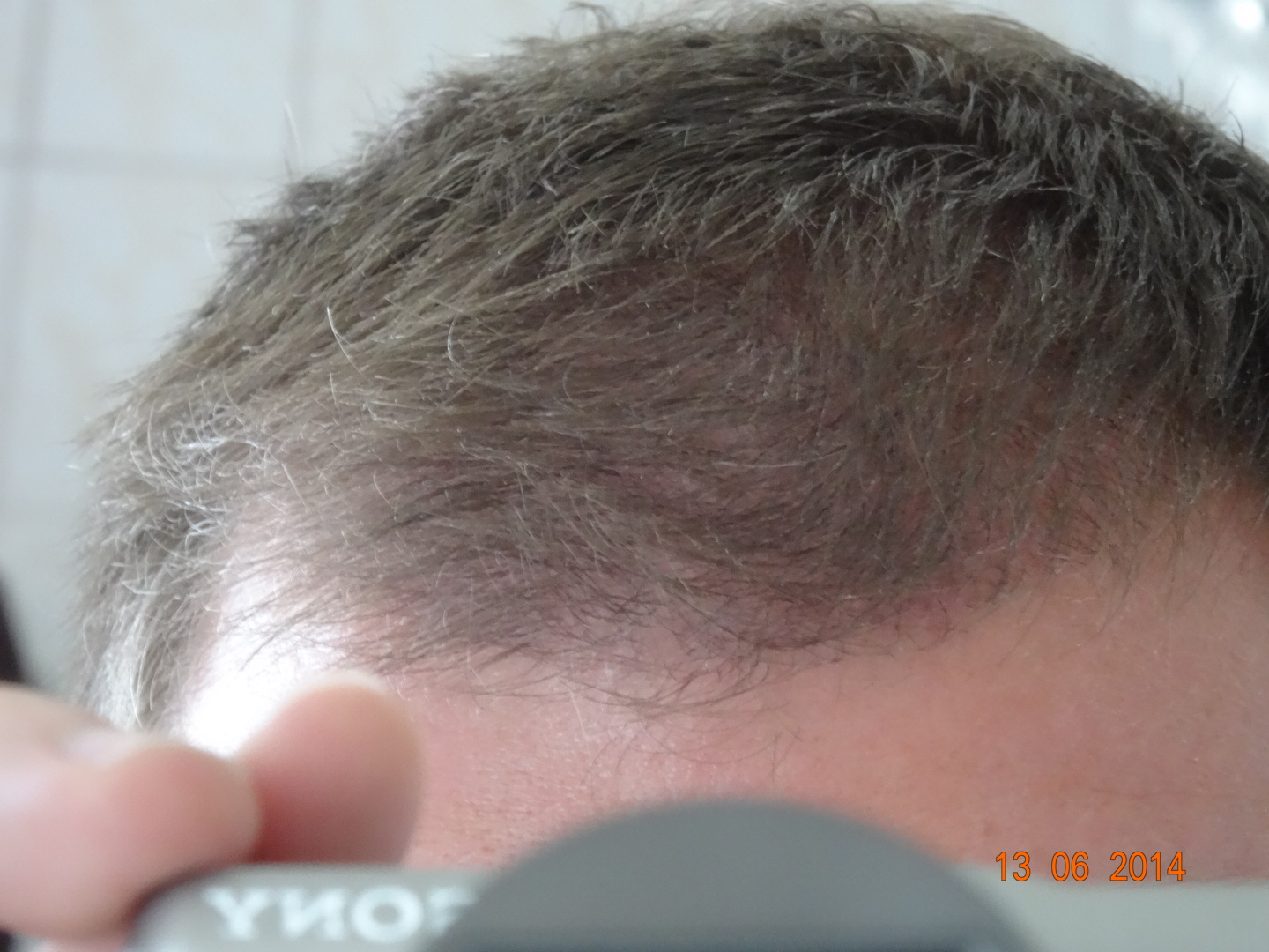 So, nach langer Zeit nun auch mal wieder etwas aktuelles von mir. Ich bin mit dem Verlauf bisher sehr zufrieden. Ich sehe noch leicht, dass die Dichte etwas weniger als beim Resthaar ist, bin aber so weit schon echt zufrieden. Es kommen immer noch neue Haare, so dass ich zuversichtlich bin, noch eine bessere Dichte zu erhalten.