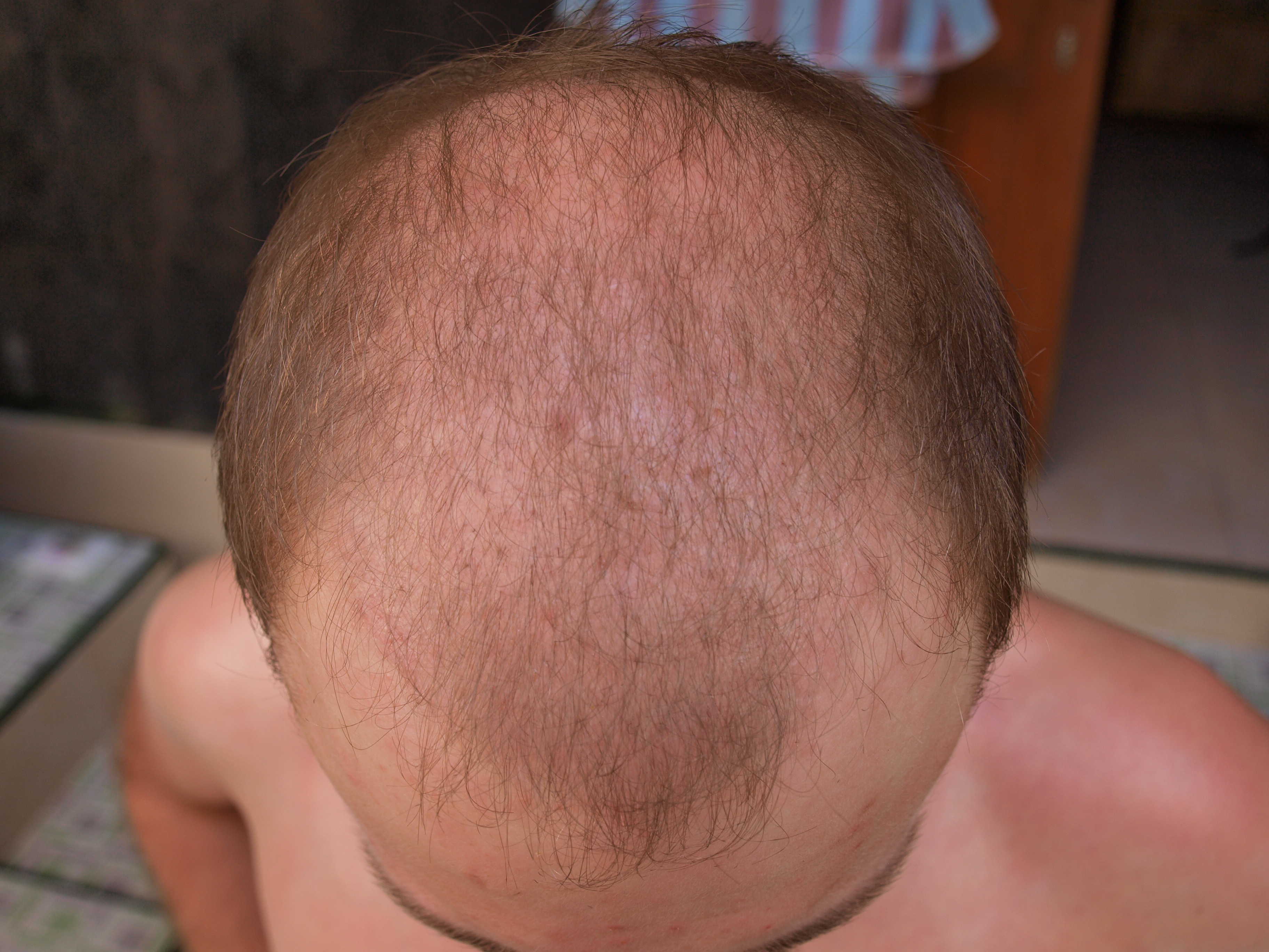 Du hast AGA = Ausdünnung (Haare extrem dünn) sämtlicher Haare.