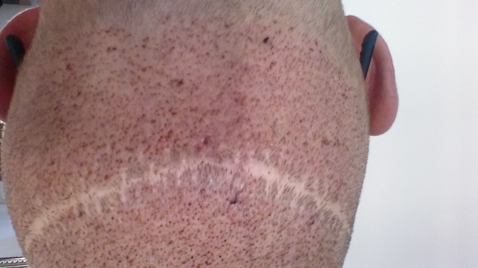 Außerdem empfehle ich dir, bei einer erneuten FUT die Narbe von einem Spezialisten vernähen zu lassen. Informiere dich, welcher Arzt die Trichophytic Closure Technik beherrscht, Dr. Feriduni ist auf jeden Fall einer, der es drauf hat.