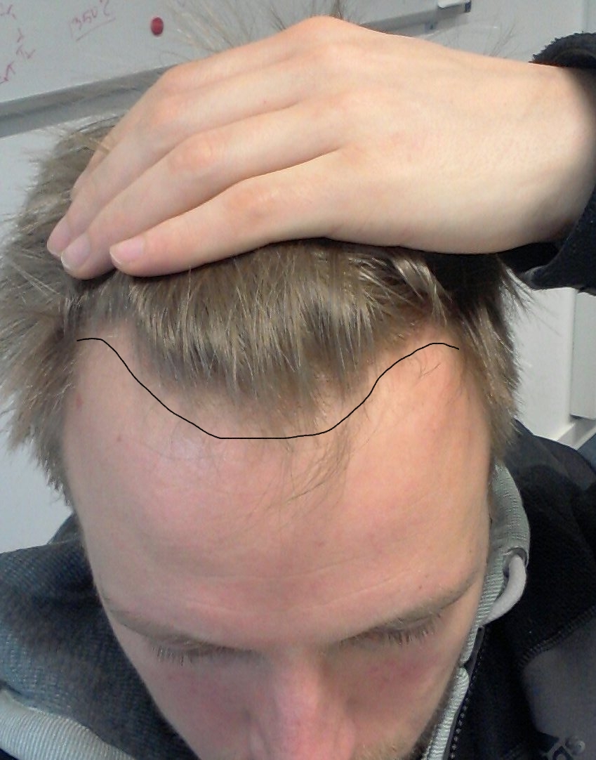 bin nun nach 11 Jahren mal wieder in diesem Forum aktiv. Habe damals mit sehr gutem Erfolg mit Fin angefangen. Allerdings bereitet mir meine ausgefranste Front große Sorgen (siehe Bild) und ich möchte nun mit 33 Jahren definitiv mal etwas dagegen tun. Meine genetische Prognose ist zwar eher schlecht (Vater NW 4-5 mit 30 Jahren, mütterlicherseits unbekannt) aber da ich mit Fin praktisch seit über 10 Jahre Stagnation erreicht habe und oben noch alles dicht ist, will ich ein gewisses Risiko für evtl. weitere HT's in Kauf nehmen.