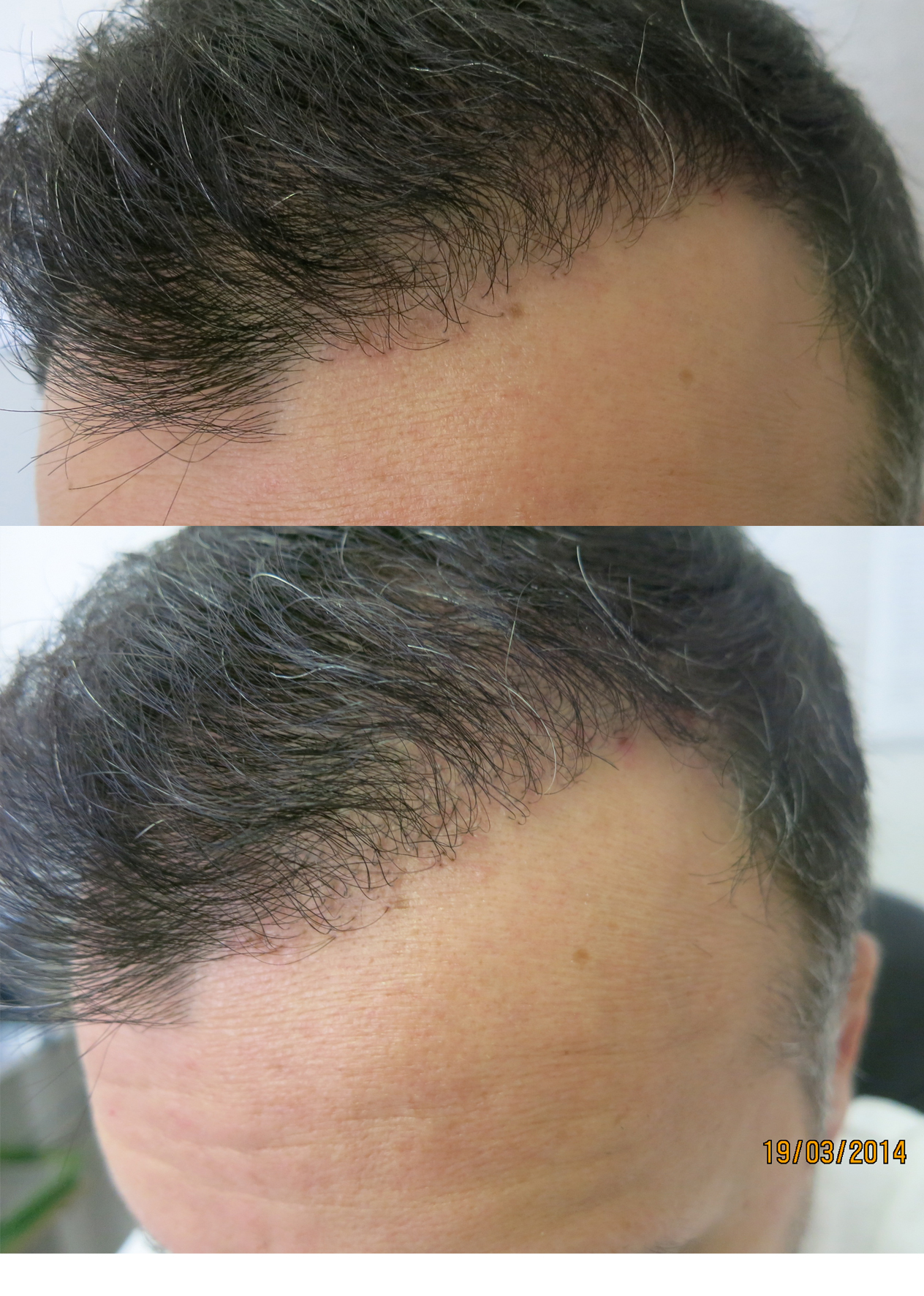 Im September 2013 , 2000 Grafts , FUE, Davon ca 1700 in die GHE und 300 zum verdichten in die Mitte.