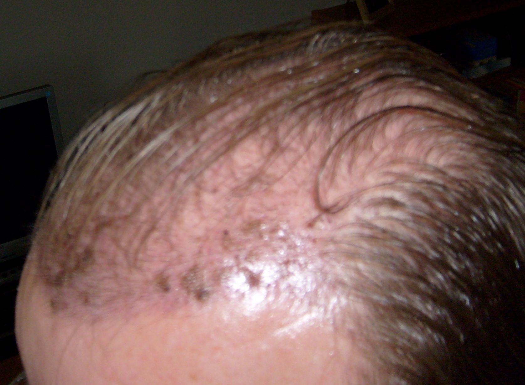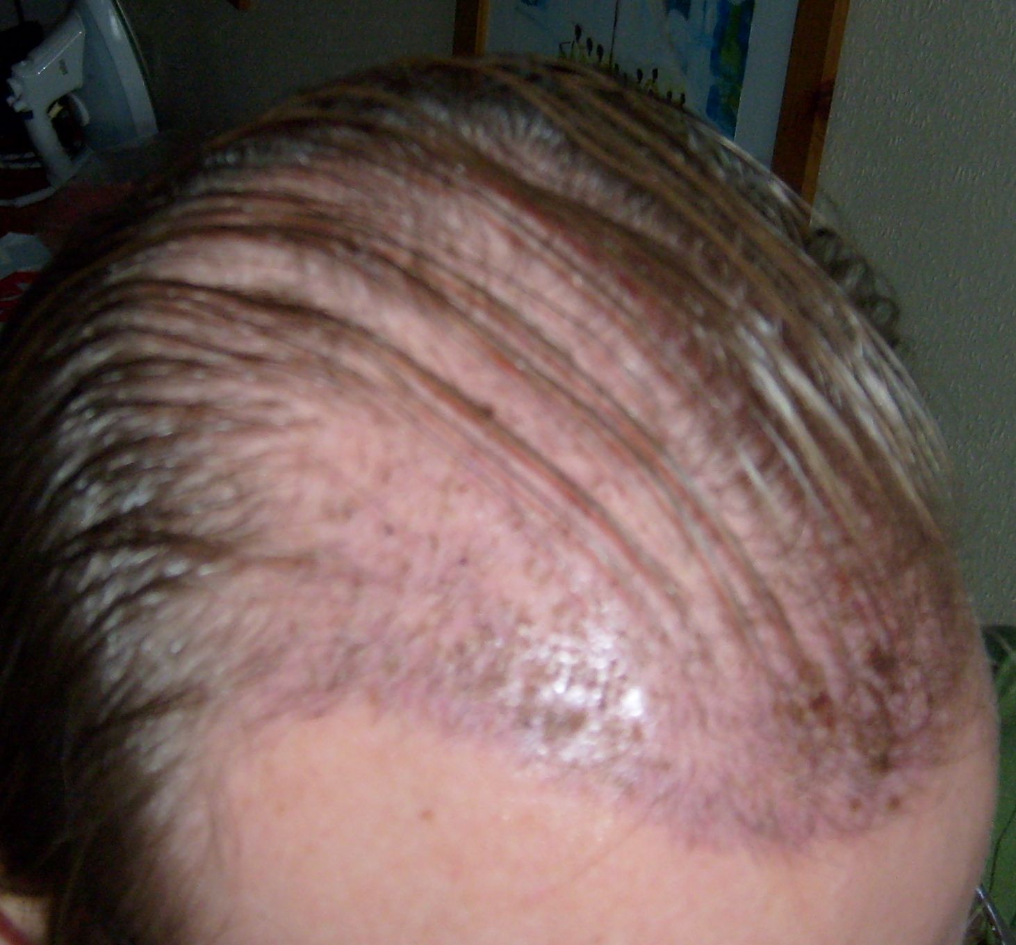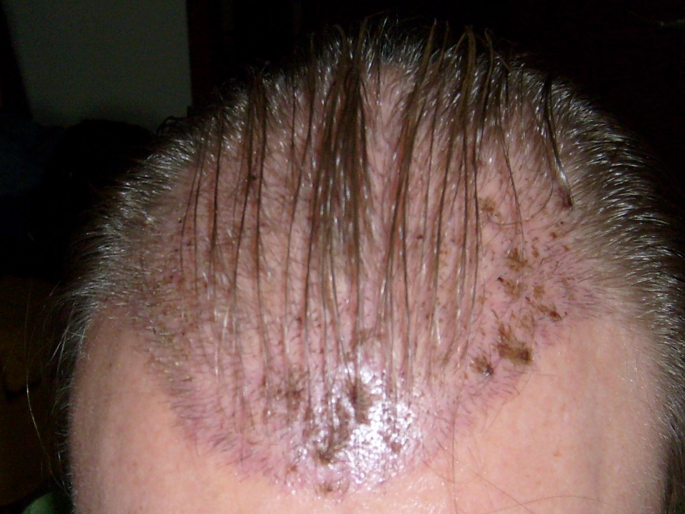 Habe die Haare so verklebt, weil die mir verordnete Gleitsalbe hart wird und das dann wie Gel wirkt.