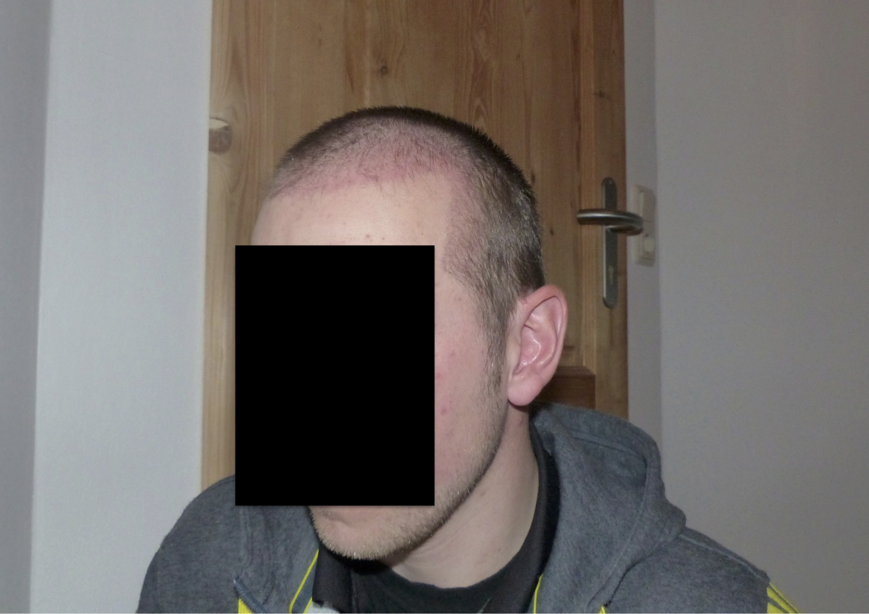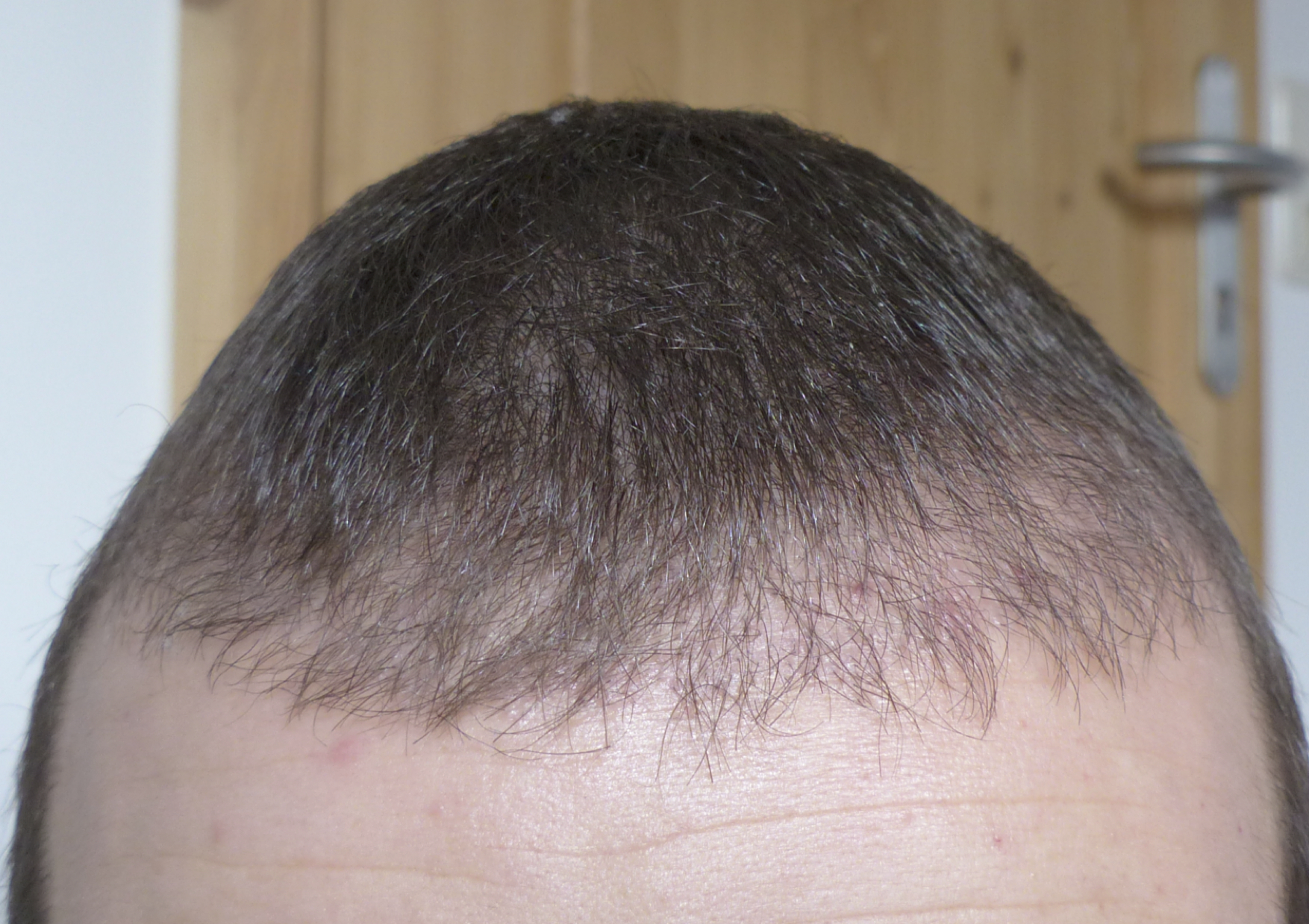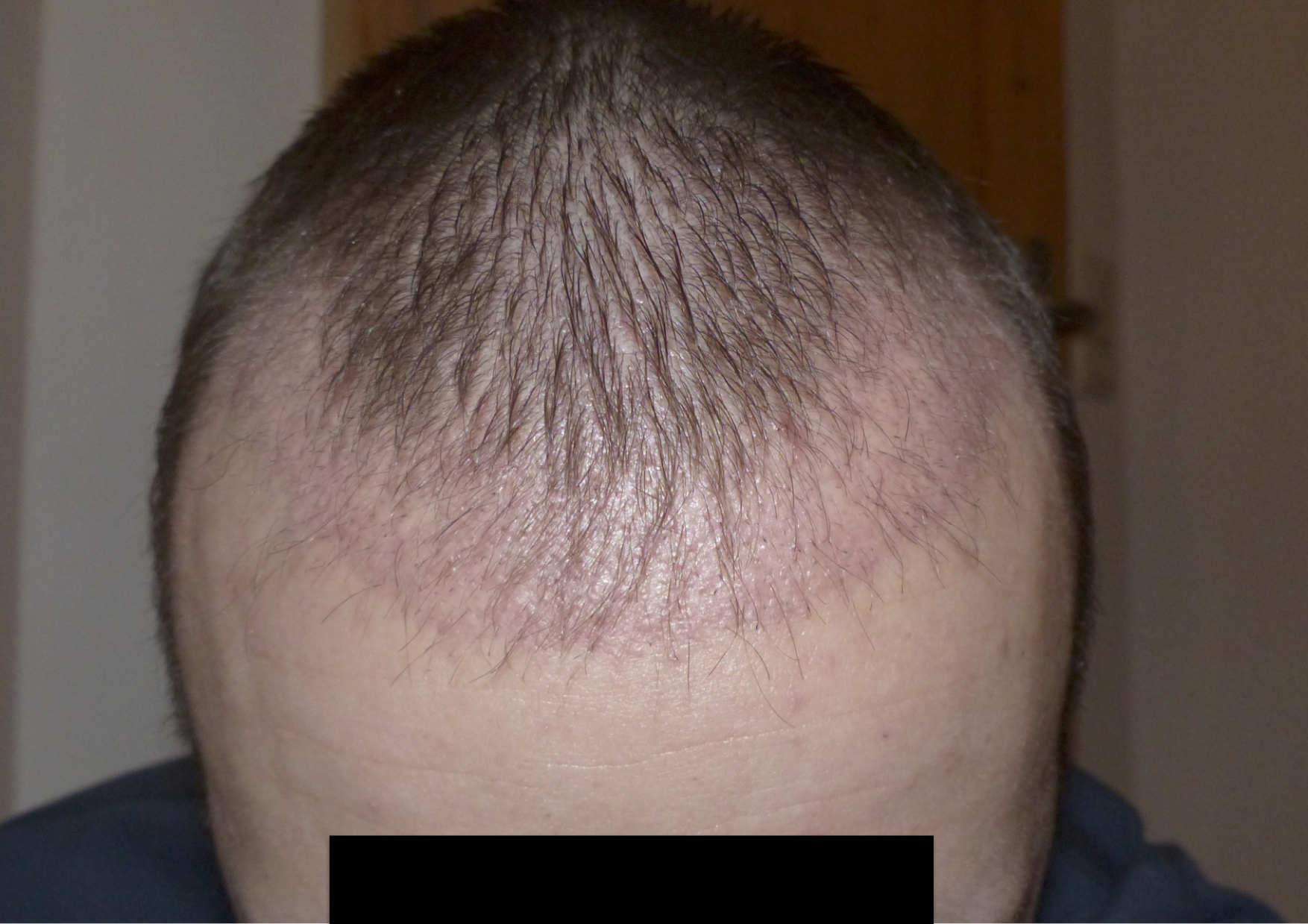 Die Kopfhaut ist noch etwas gerötet, Schmerzen habe ich keine.