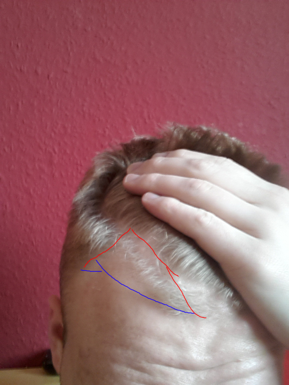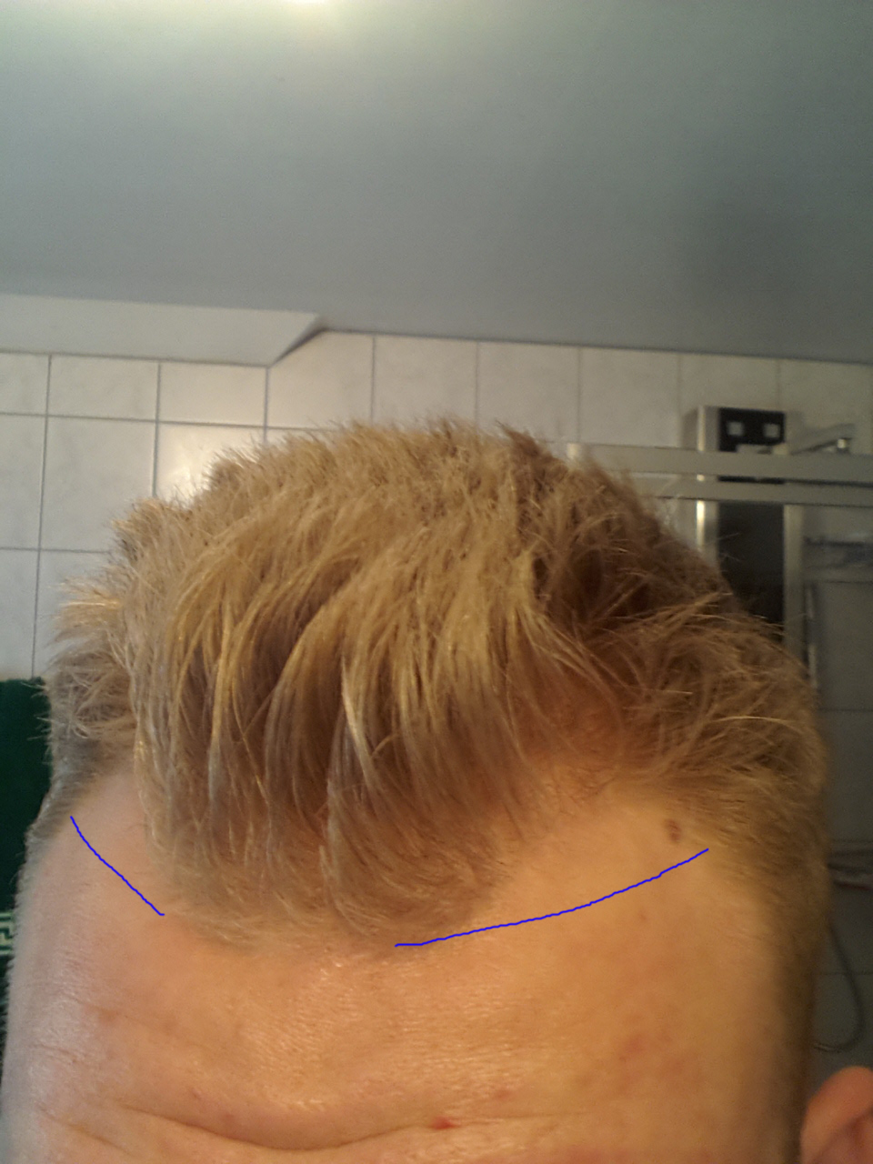 Wie ihr seht leide ich unter Geheimratsecken, welche am Ansatz (in den Ecken zur mitte hin) dünner werden.
