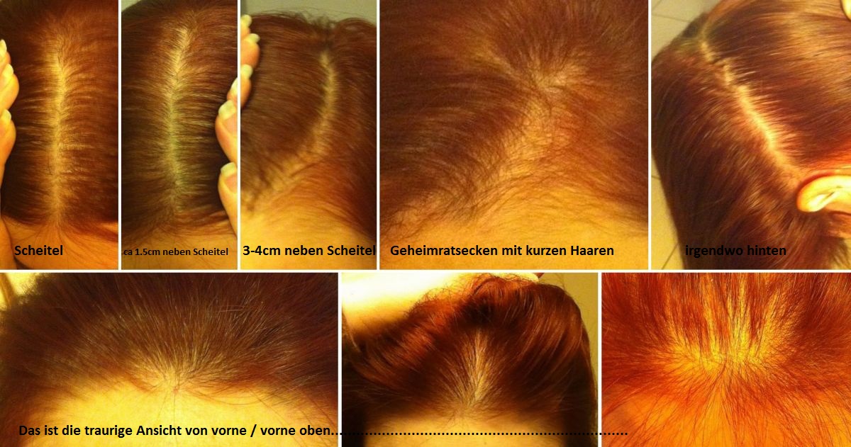 Mein Name ist Melanie, ich bin 26 Jahre alt, und habe Haarausfall... Ziemlich genau um meinen 20. Geburtstag (2008) herum habe ich gemerkt, dass die Haare lichter werden in der Scheitelregion. Anfangs habe ich das natürlich auf falsche Ernährung geschoben und es mit Priorin probiert, und versucht, Vollkorn- statt Weissmehlprodukte zu essen etc. Das Ganze hat nichts gebracht. In Anbetracht dessen, wo ich die Haare verliere und auch nach einem prüfenden Blick auf alte Familienfotos kam mir dann der Gedanke, dass das Ganze wohl vererbt sein muss (beide Omas haben/hatten lichte Haare, aber keine Glatze). Vor ca 3 Jahren bei einem Besuch bei der Dermatologin habe ich das Thema dann angeschnitten und sie hat meine Befürchtung bestätigt. Aber das sei noch gaaaanz am Anfang (von wegen...)