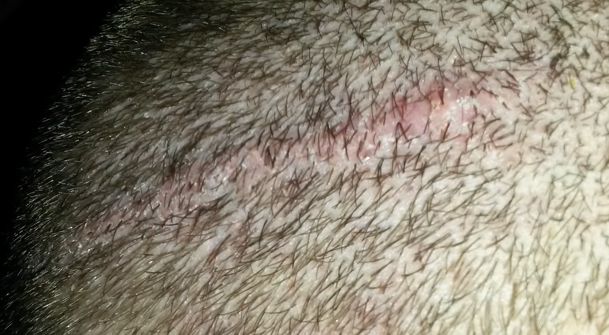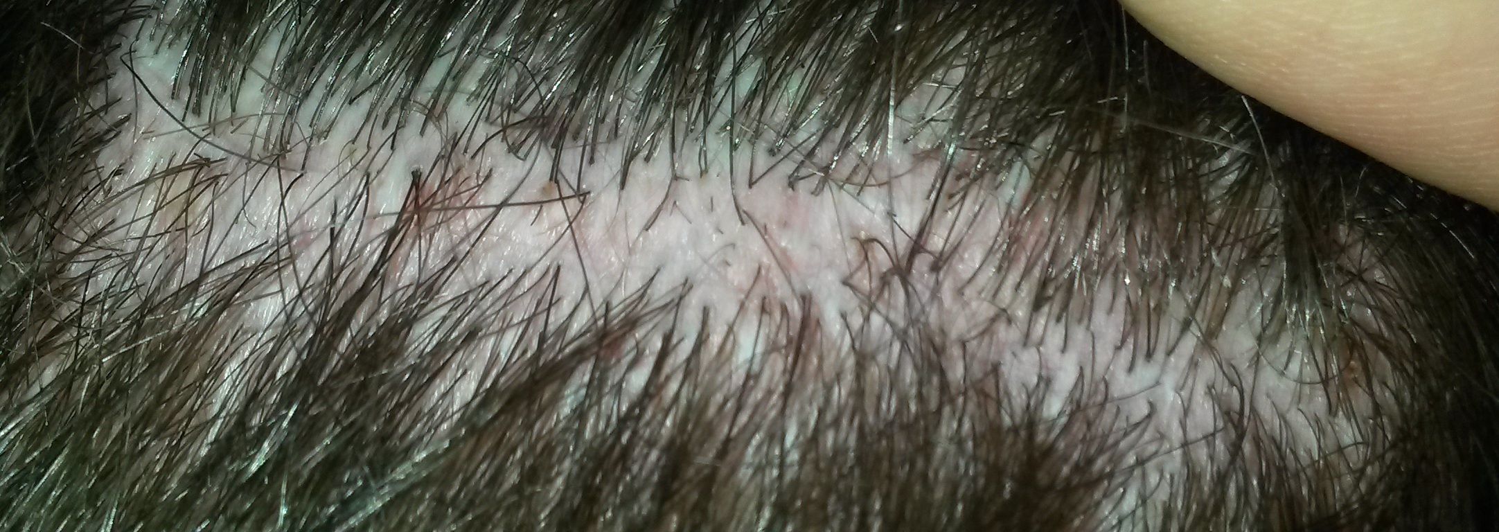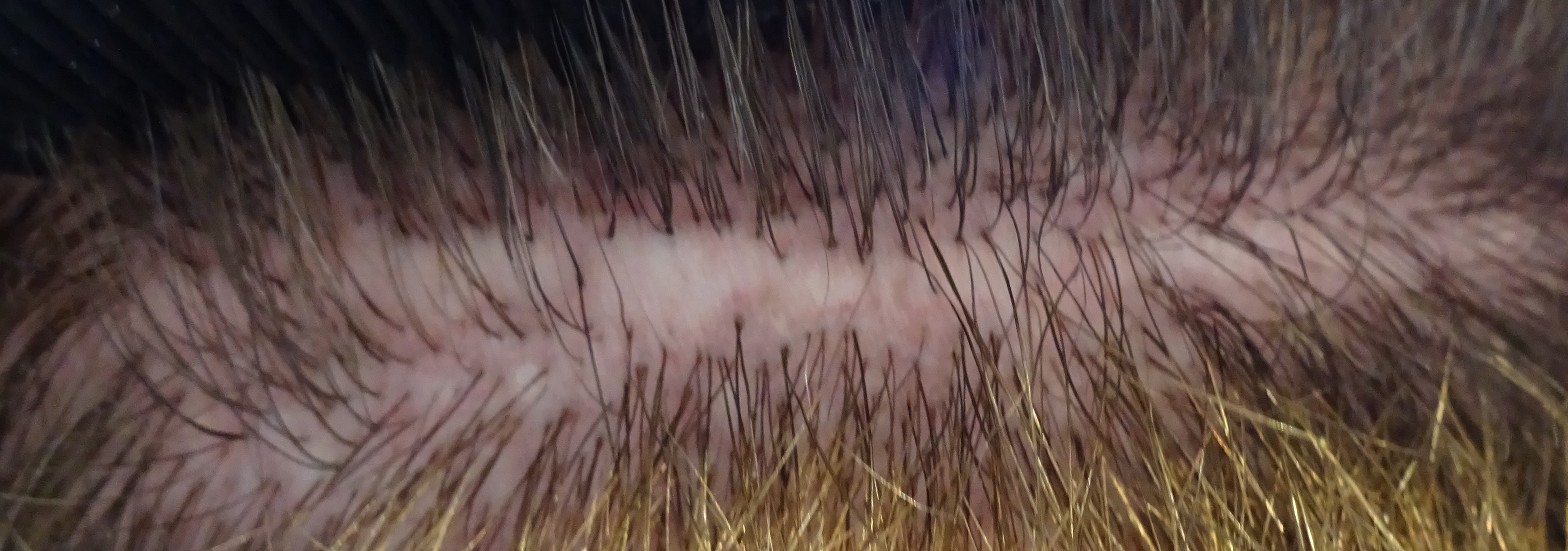 Mit der Narbe hatte ich keinerlei Probleme, da die Haut sich immer wieder gut regeneriert hat. Ich hätte sogar noch die Möglichkeit gehabt, nen max-Strip von 3000 grafts entnehmen zu lassen. Nachdem ich aber weg möchte von dieser Technik (weil es doch sehr einschränkt), habe ich mich entschlossen, die Narbe so gut wie möglich "verschwinden" zu lassen. Aus meiner familiären Situation weiß ich, dass ich wohl nie über NW4 kommen werde und daher die FUE Variante mir genügen Grafts für eine Verdichtung liefert.