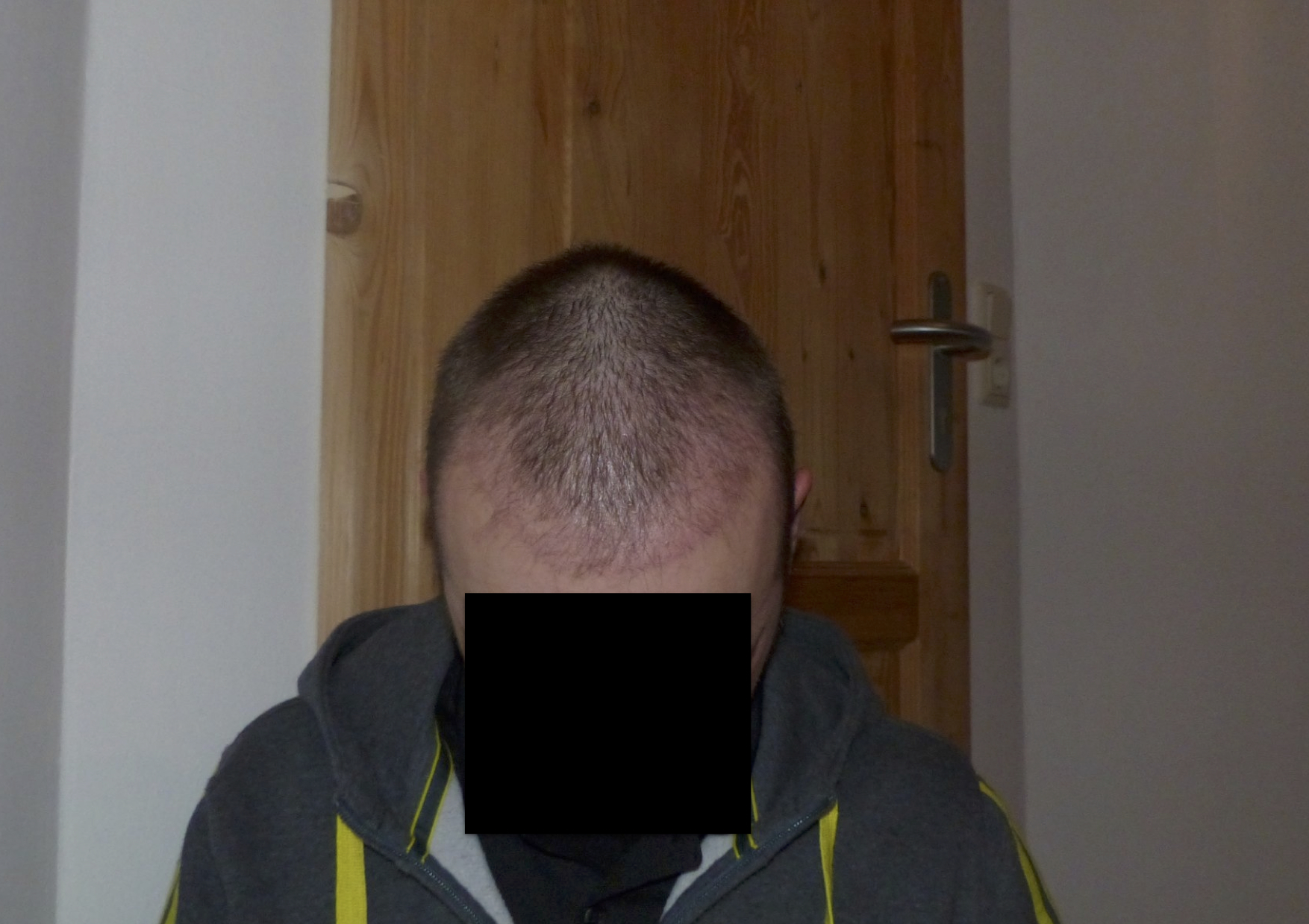 Die Kopfhaut ist noch etwas gerötet, Schmerzen habe ich keine.