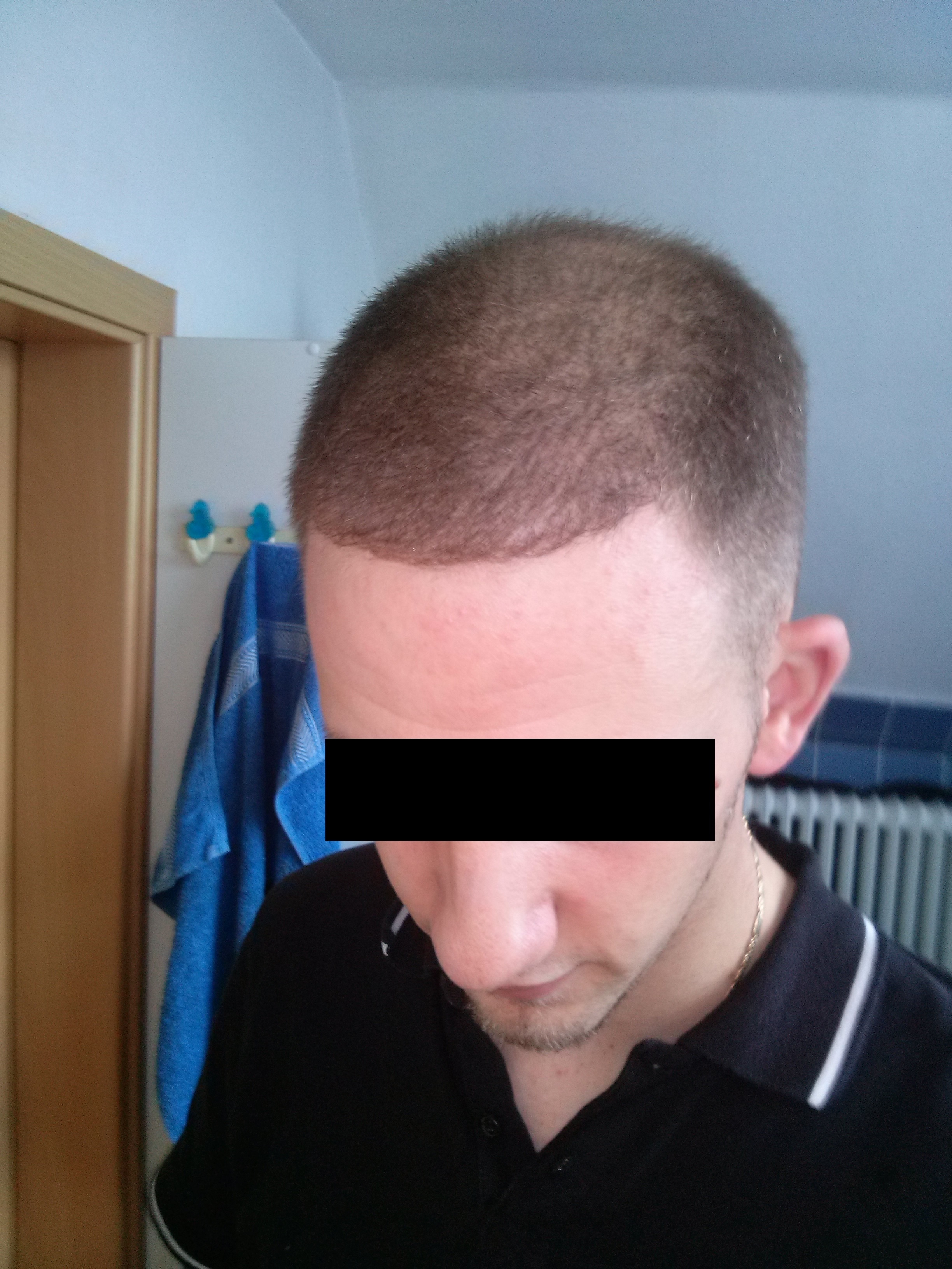 Dies hat mich von Zeit zur Zeit immer mehr belastet, sodas ich wirklich jeden Tag darüber nachdenken musste. So kam ich auf die Idee im Internet nach einer Lösung für mein Haarproblem zu suchen. Gefunden habe ich "Mane Haarverdichtung". Hat mir die erste Zeit wirklich sehr geholfen, da ich die Tonsur damit super verstecken konnte. Im Vorderen Berreich war dies auch noch möglich. Hab das Prudukt 1 Jahr verwendet. Mit der Zeit wurden vorne die haare aber leider immer weniger sodas ich eine große Stirn bekam. Ab diesen Moment an wusste ich das ich eine Haartransplantation machen werde.
