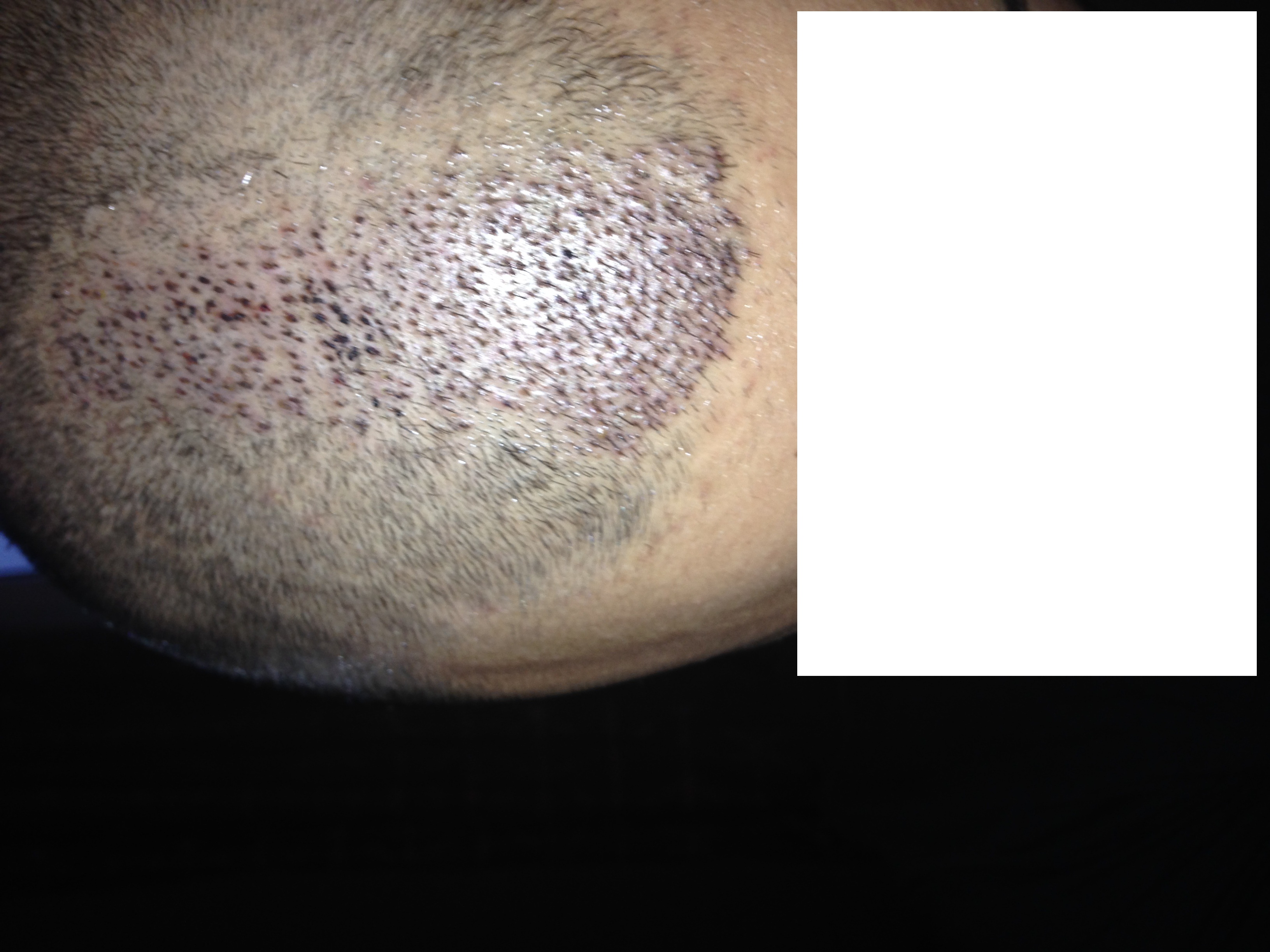 Ich muss sagen, es sieht aus meiner Sicht erstmal nach ziemlich sauberer Arbeit aus(auf den ersten Blick natürlich, wie das Endergebnis und Anwuchsrate wird kann man natürlich erst nach einem Jahr beurteilen). Sehr geringe Krustenbildung was dafür spricht das dort jemand gearbeitet hat der weiß was er da tut und die Verteilung der Grafts ist zwar etwas seltsam liegt aber hauptsächlich am Fall, aber wie die Grafts eingesetzt sind(Wuchsrichtung usw.) sieht alles gut aus.