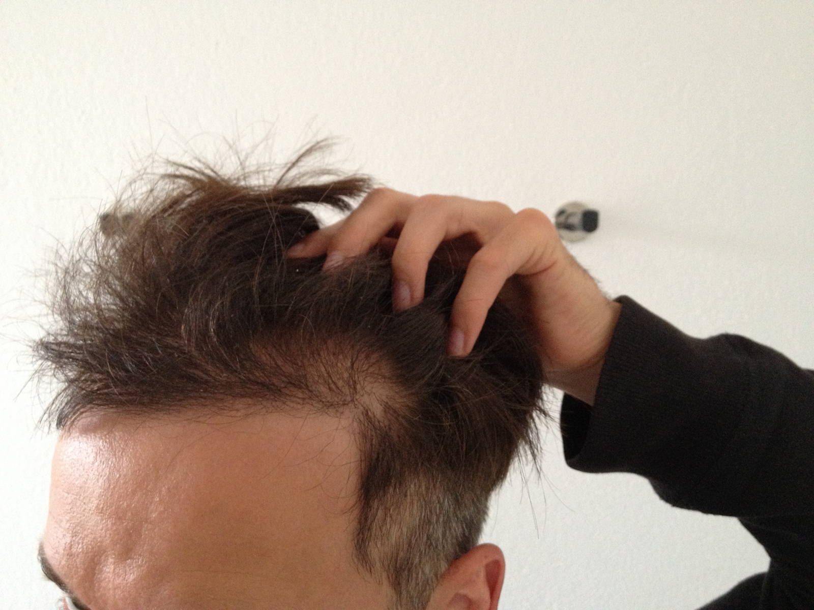 Außerdem war die gesetzte Dichte an der Haarlinie zu gering wenn man bedenkt das er relativ dichtes Haupthaar hat.