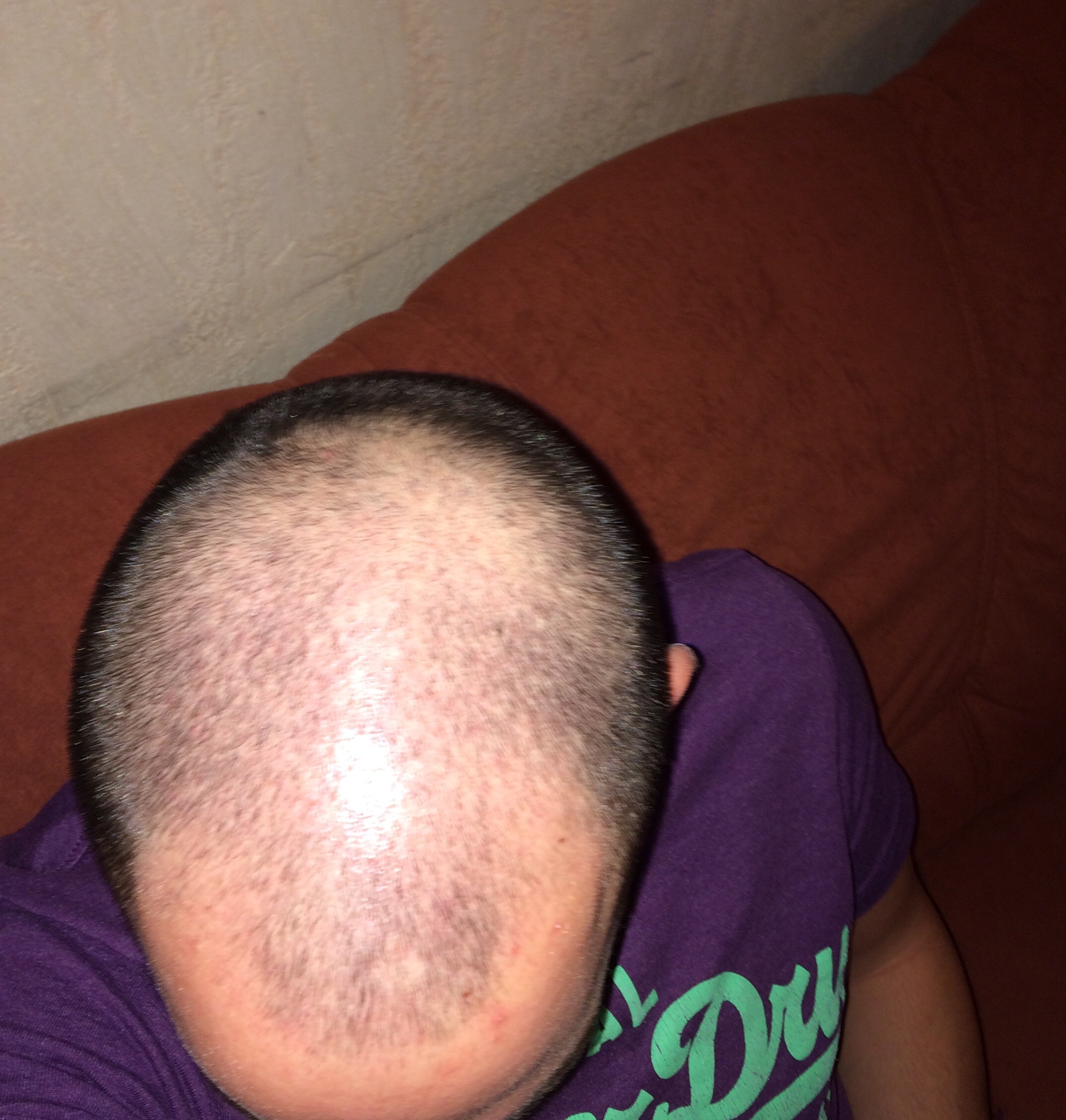 Und das mit Regaine weiß ich nicht was bei deinem Zustand bringen sollte!? Also mehr kannst du ncht mehr verlieren an Haaren, aber mein Tipp