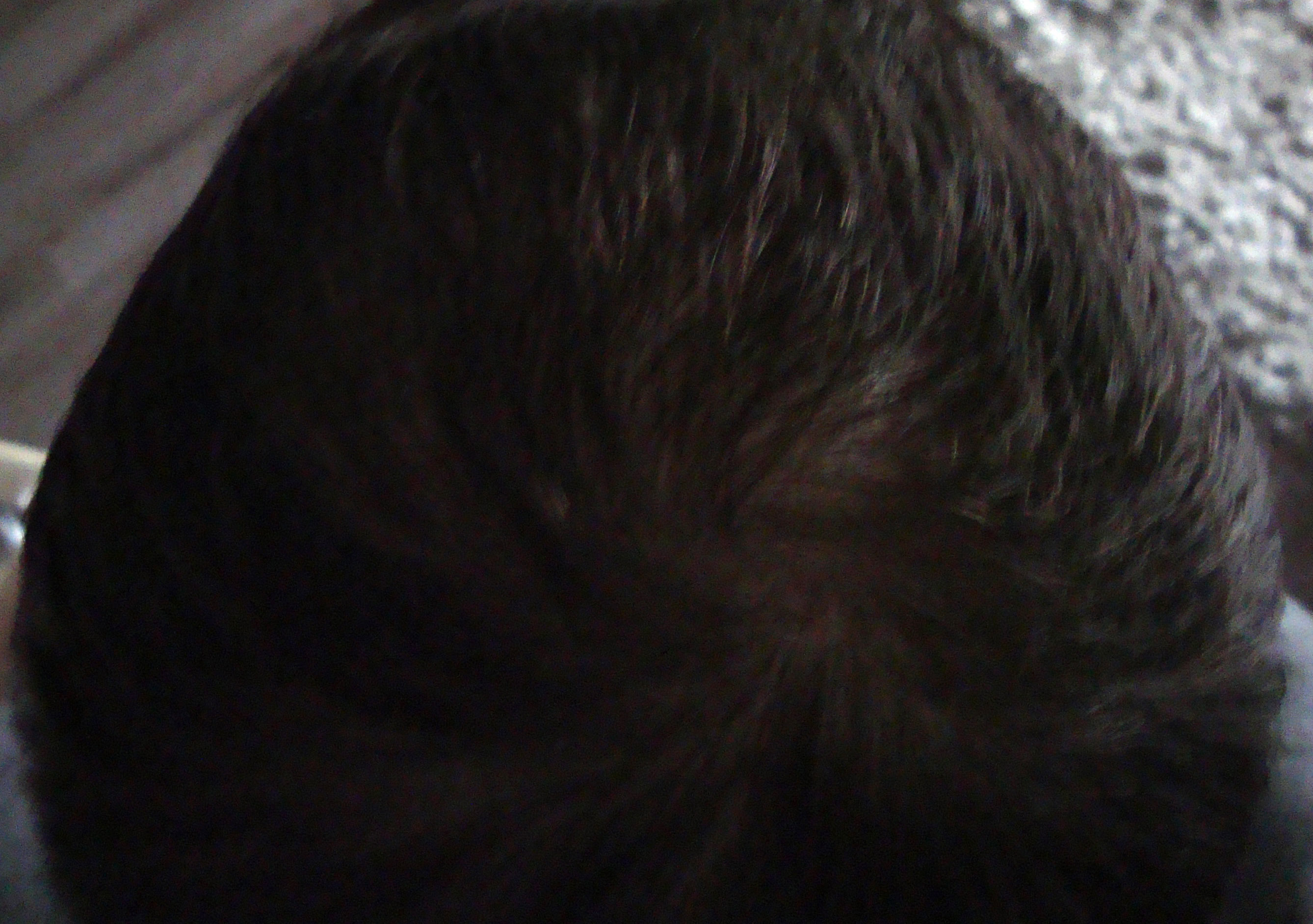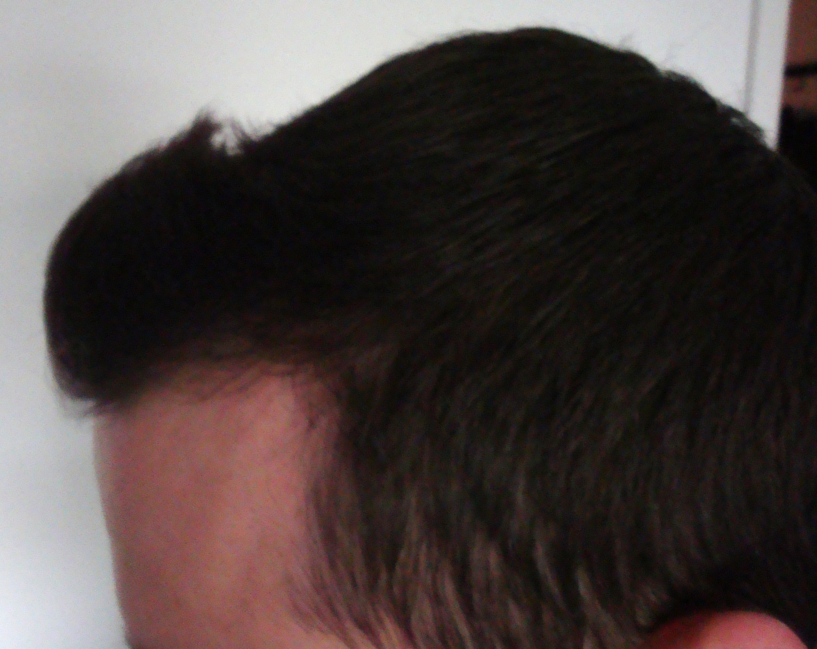 Am besten du dunkelst den Raum noch ein wenig mehr ab und kämmst die Haare noch weiter über die Stirn. Dann kann man bestimmt noch mehr erkennen, als auf den bisherigen Fotos.