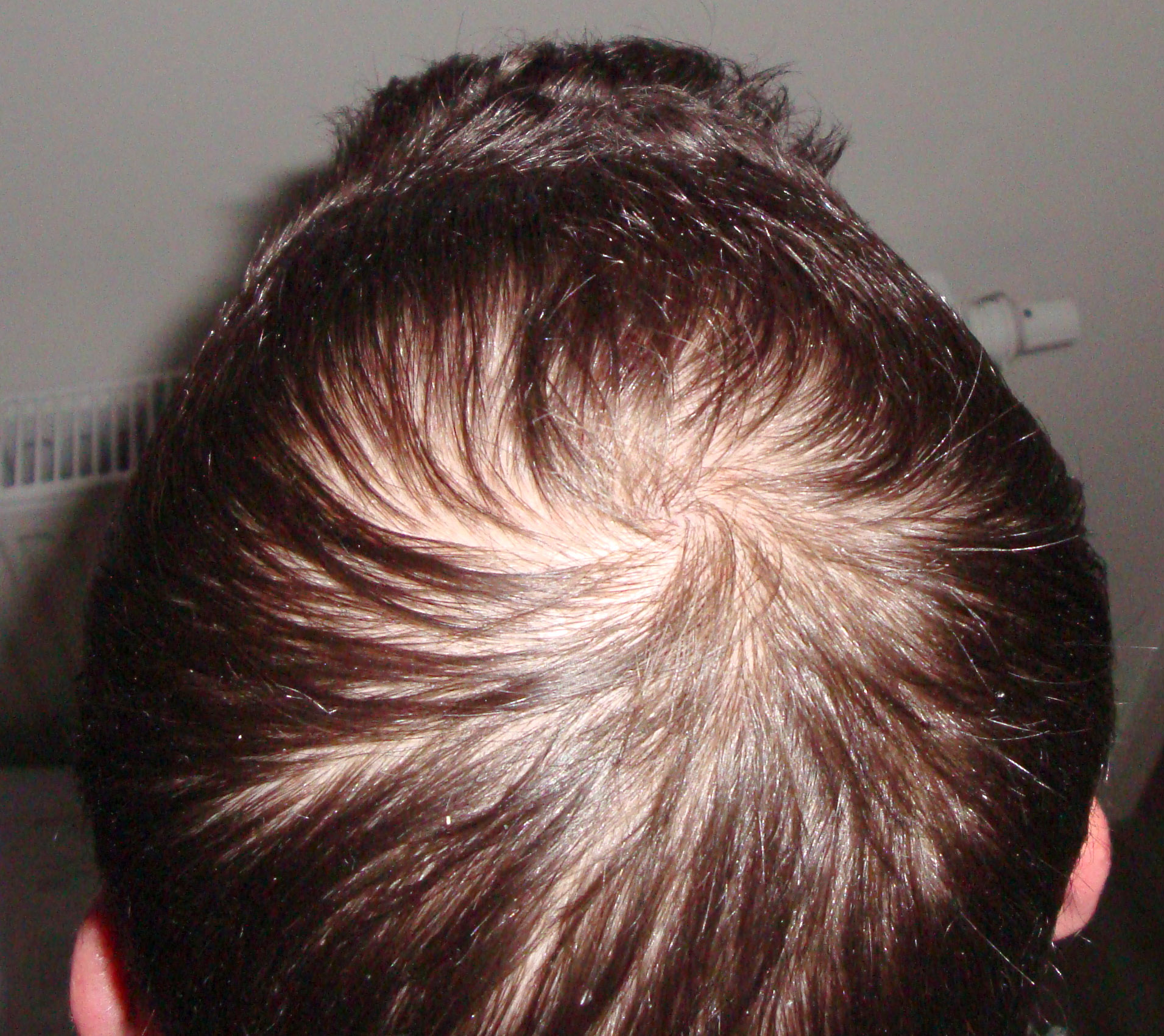 Ne, mal im Ernst: Man kann auf den Fotos nix sehen, außer dass man Lichtungen erahnen kann. Licht an (ggf. mit Blitz fotografieren) und auch mal die Haare nach hinten kämmen und die GHE "freilegen".