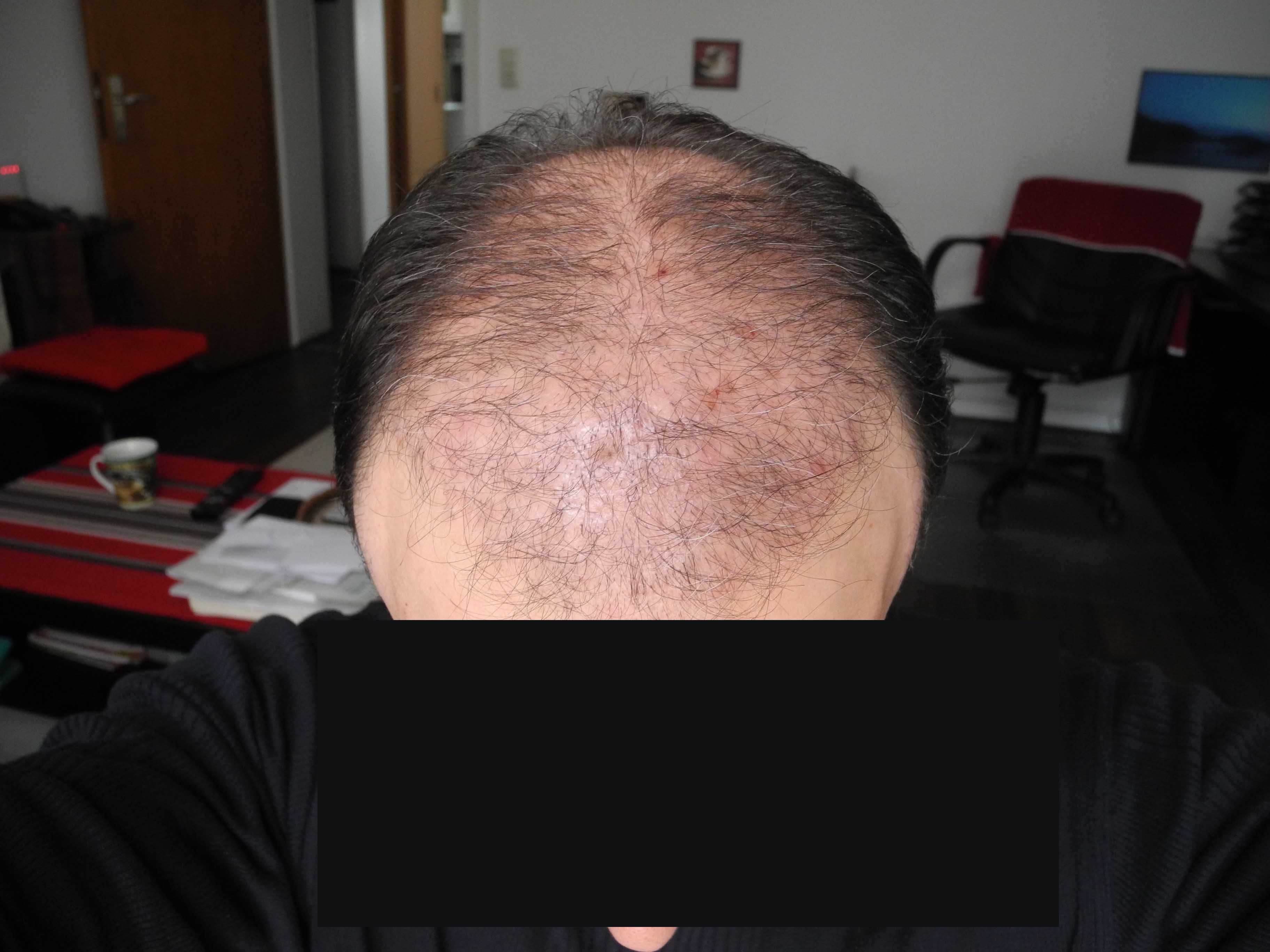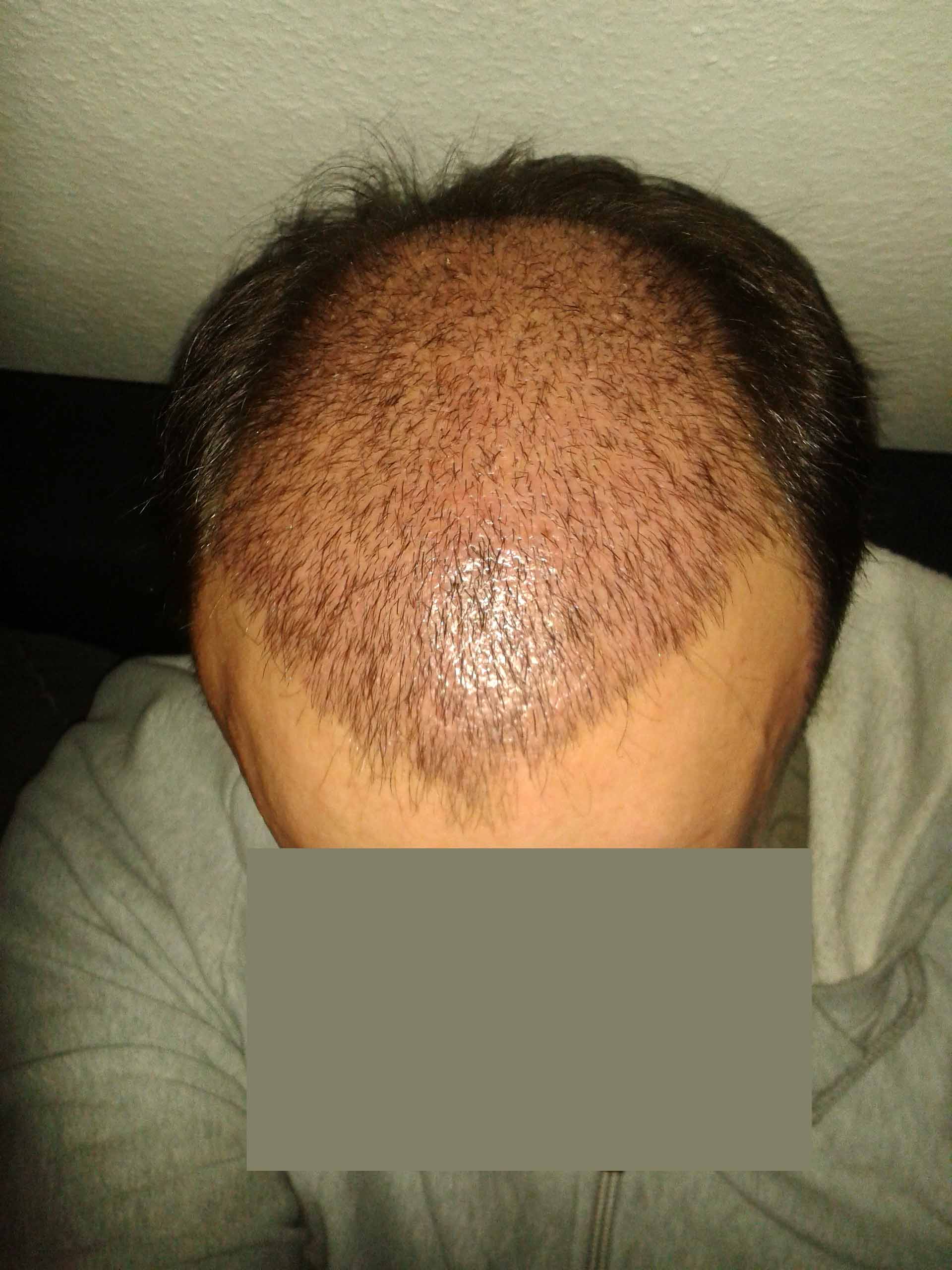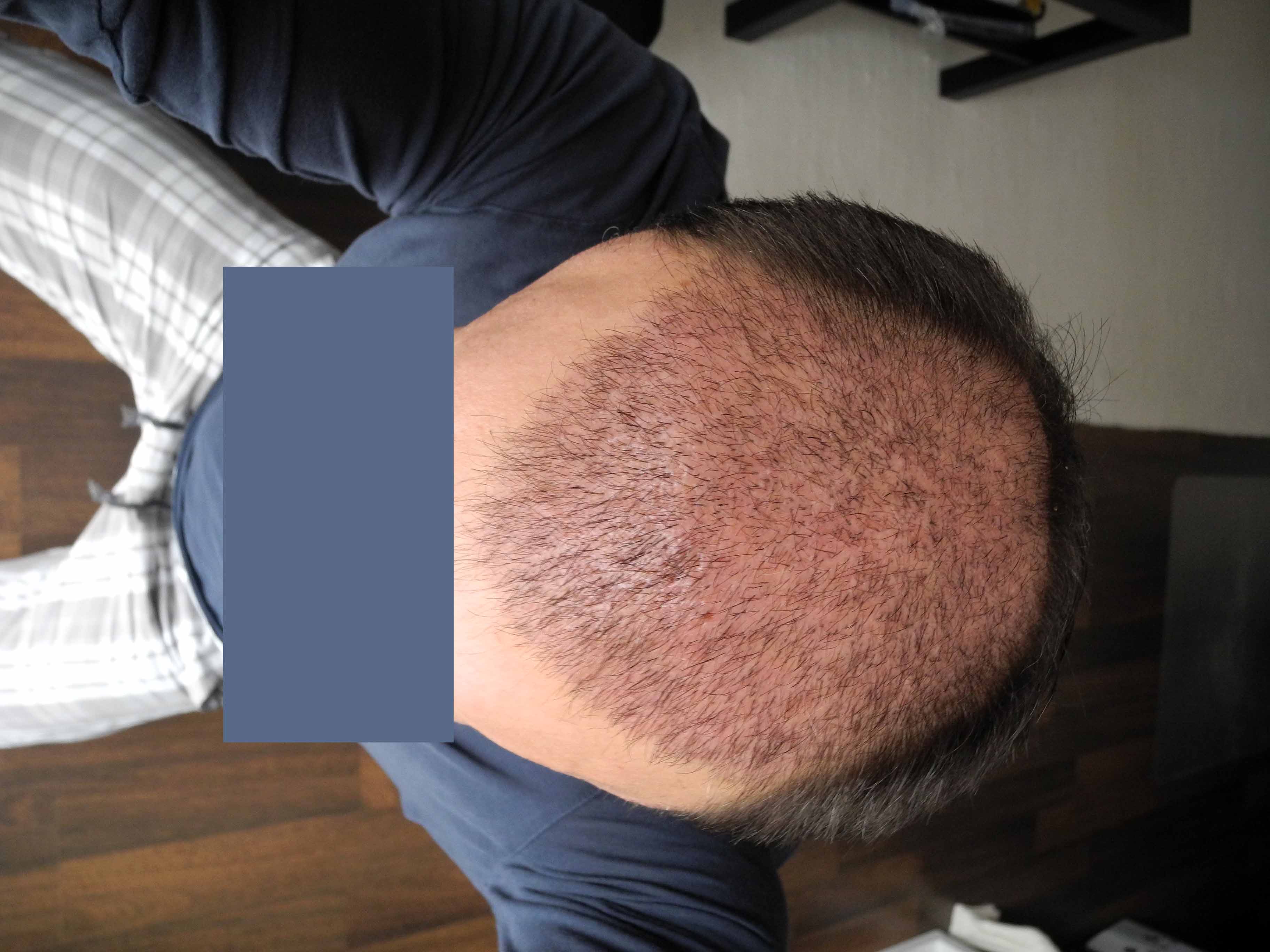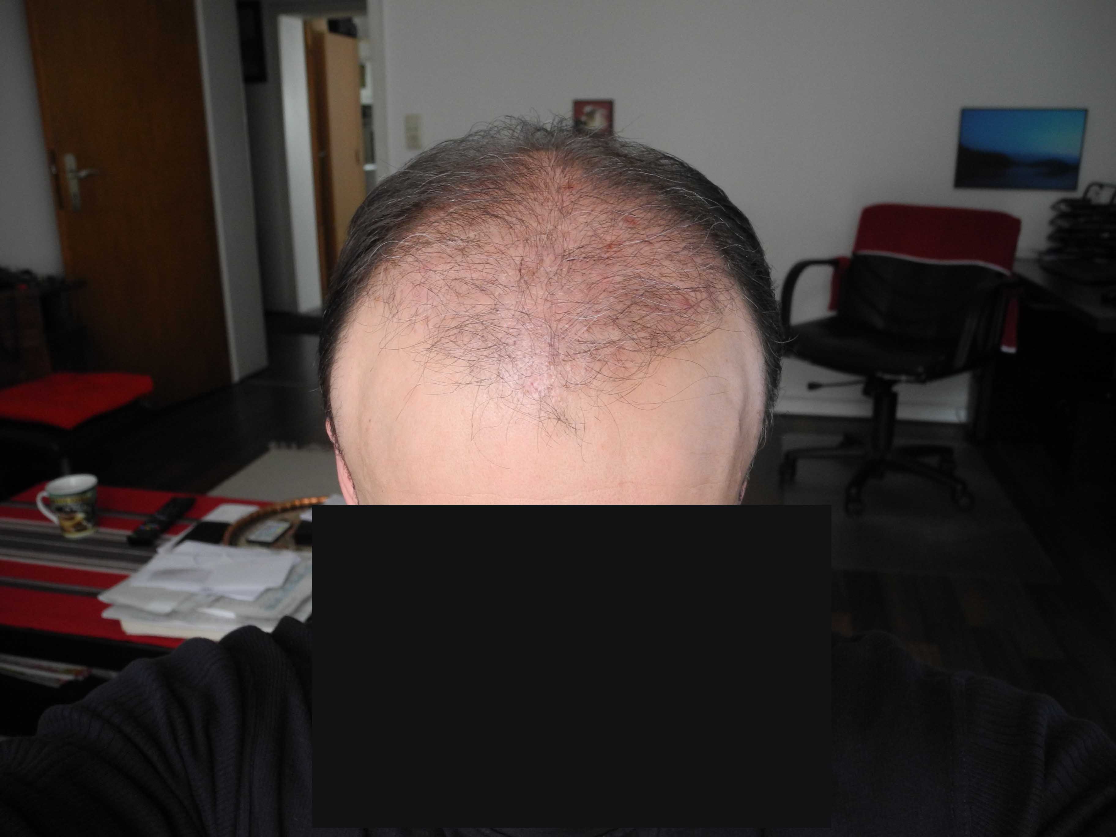 Viel hat sich noch nicht getan, es fängt aber an langsam zu sprießen, scheine eher ein slow-grower zu sein, wahrscheinlich auch altersbedingt. Ein paar Haare sind schon raus, ein paar gar nicht erst ausgefallen, sind munter weiter gewachsen. Vereinzelt kommen auch kleine Pickel raus, Zeichen dass da was kommt hoffe ich... Auch ist die Haut immer noch leicht gerötet.