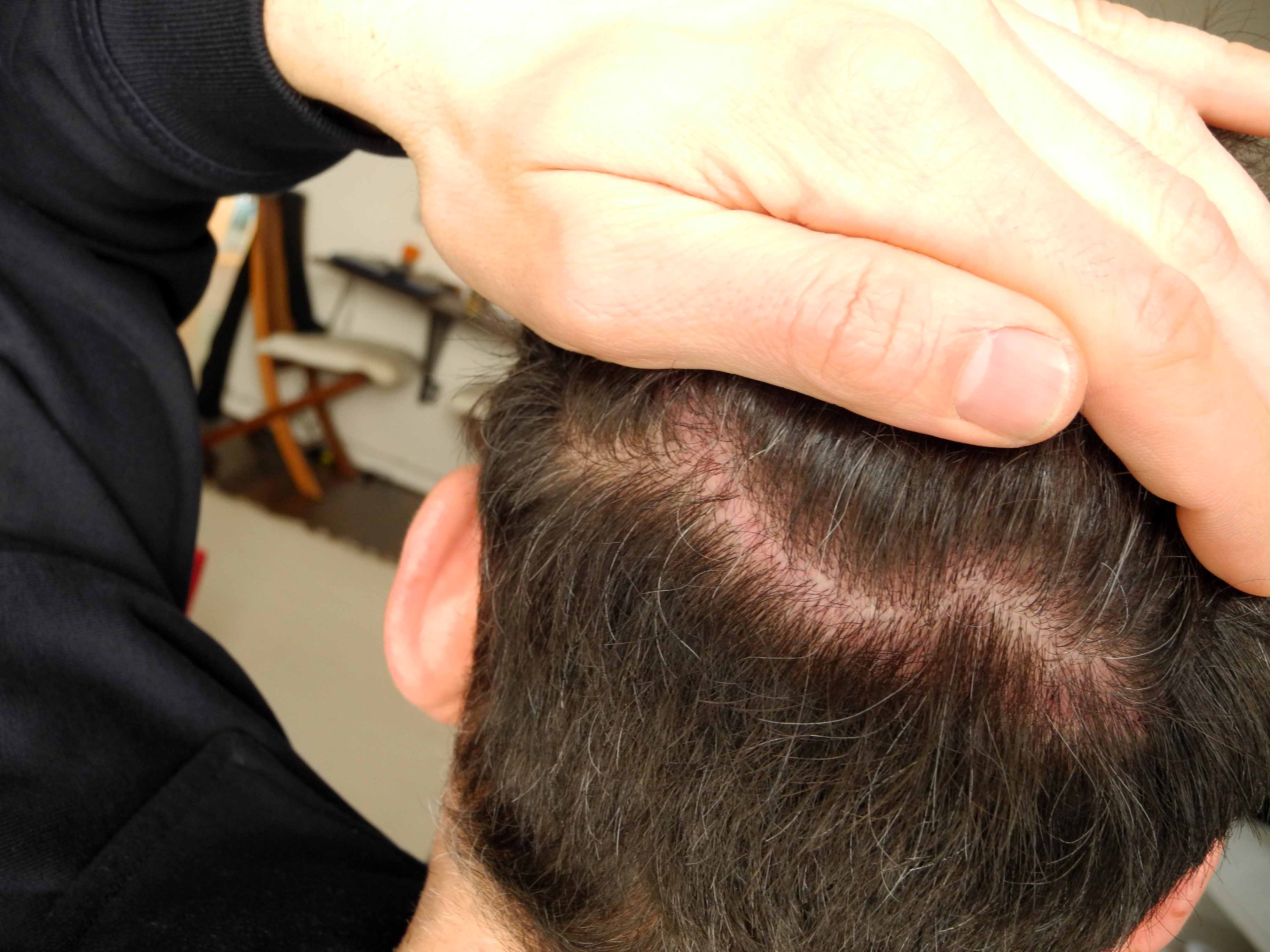 Bereich um die Narbe und teilweise die verpflanzten Haare vor allem um den Tonsurbereich sind immer noch berührungsempfindlich, es scheint dass sich das Ganze sehr langsam normalisiert, zumindest bei mir.