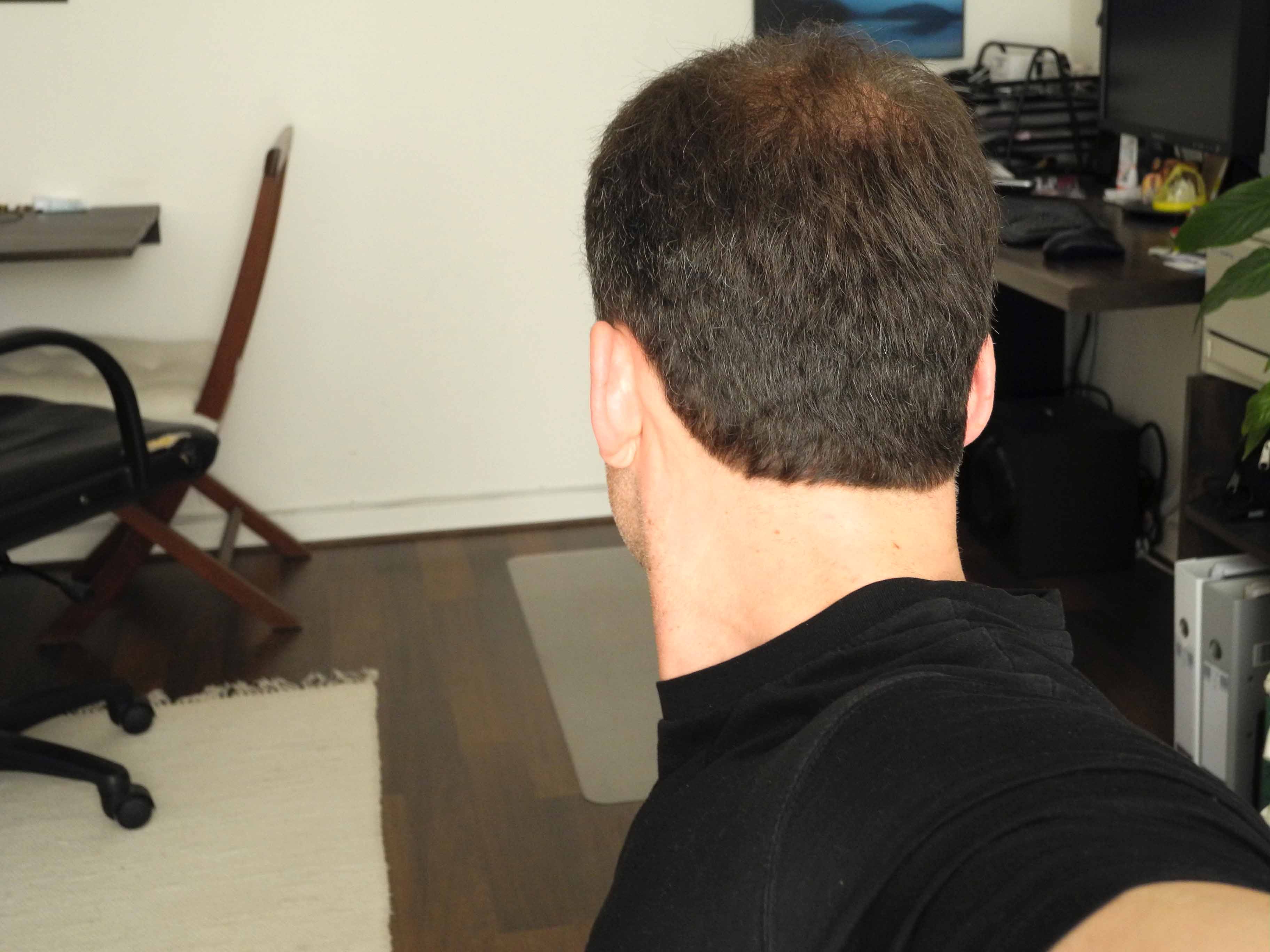 Anbei ein paar Fotos von heute, hatte gestern einen Haarschnitt, es wurden auch die transplantierten Haare gekürzt.