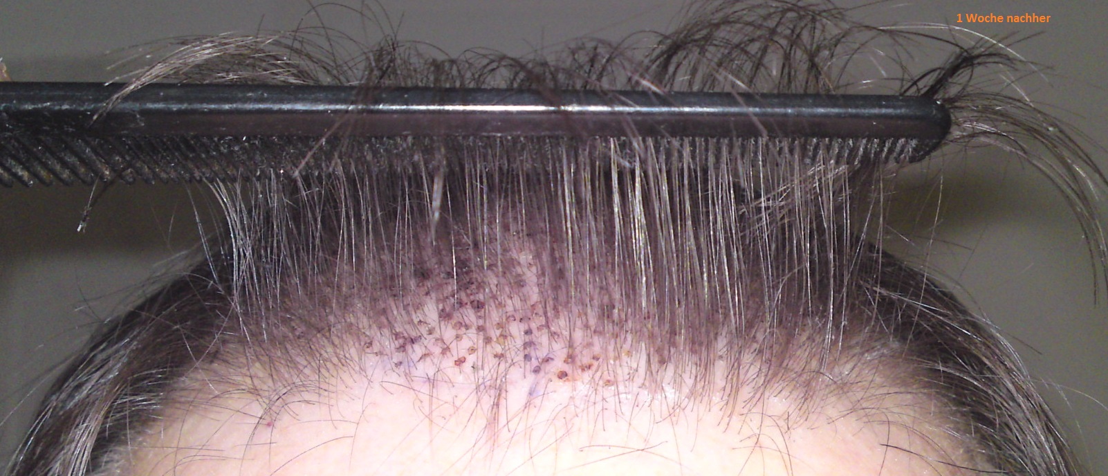 Vorteil war eindeutig, dass Haare nur bei Entnahmestelle hinten rasiert werden mußten, vorn konnten sie glücklicherweise unrasiert bleiben.