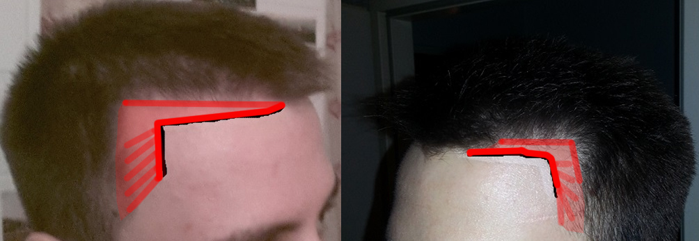 Jedoch bin ich mit meinem Schläfenbereich nicht sonderlich zufrieden, dieser ist, im Vergleich zur Front, noch immer sehr hoch und kontrastiert recht auffällig mit der restlichen Haarlinie.