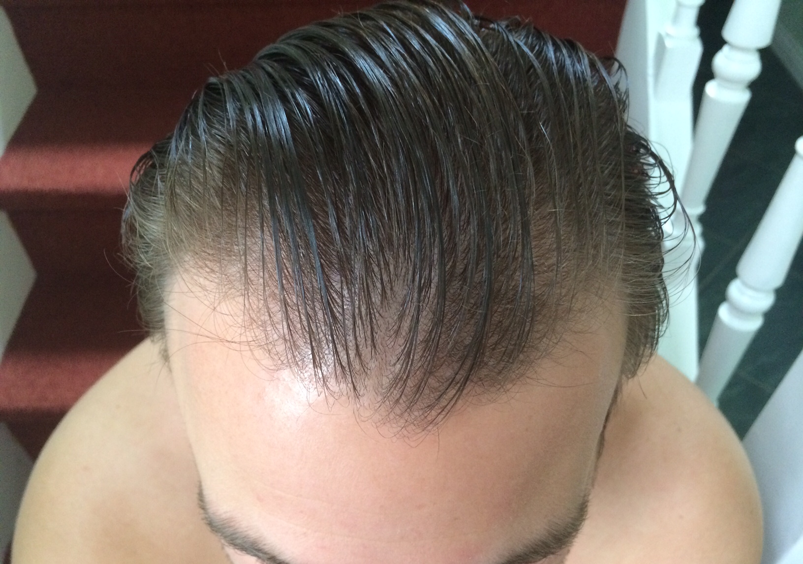 Bilder findet Ihr im Beitrag. Ich habe "nur" Geheimratsecken und etwas dünner werdendes Haar am Vorderkopf.