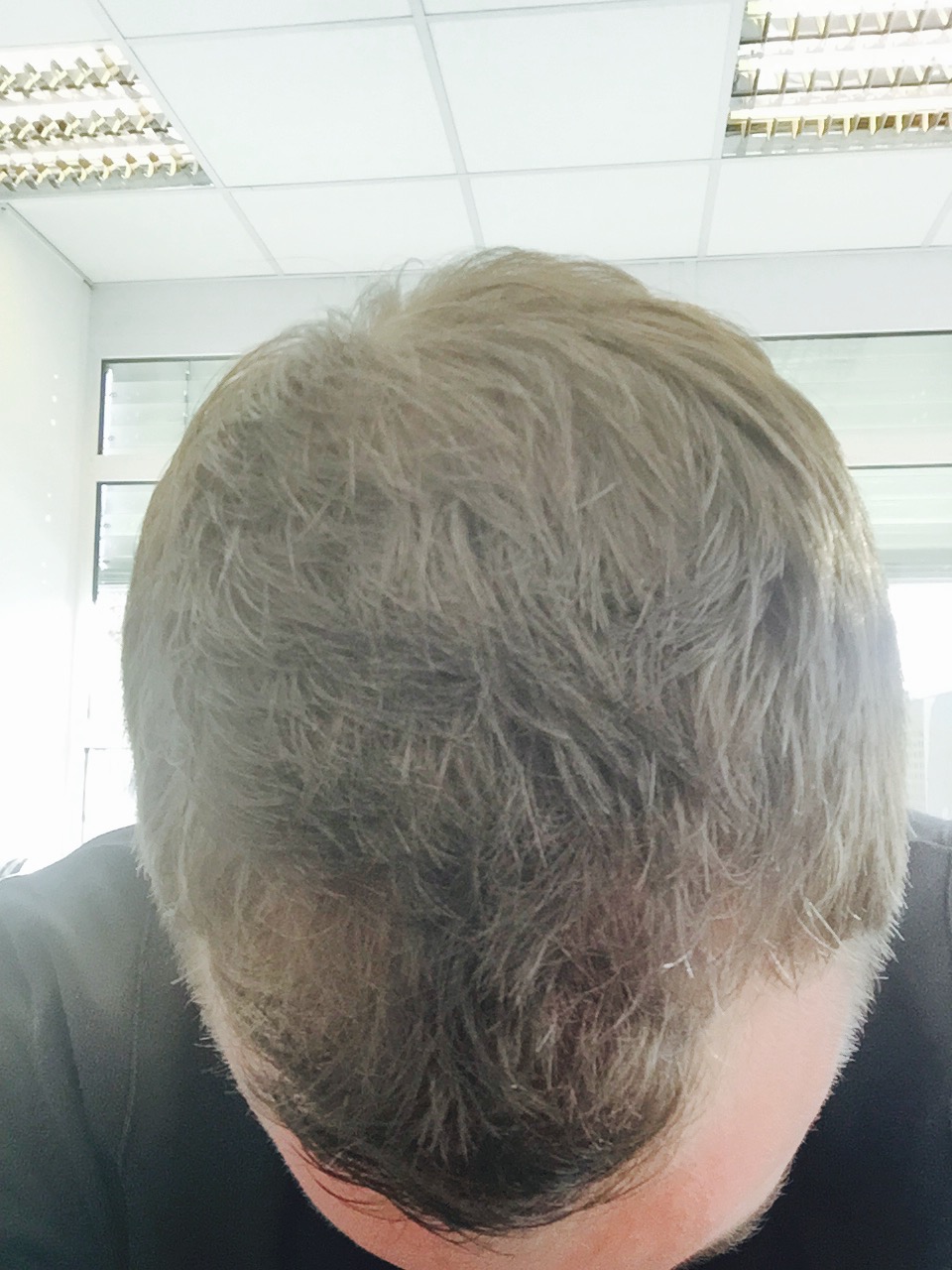 zum einen ist die Quali der Bilder leider nicht die Beste und zum anderen kann man auch, wenn die Quali besser wäre, nicht erkennen welchen Haarstatus du hast.