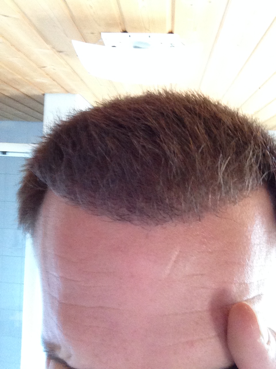Wie versprochen das erste 3.5 Monats update. Das Foto wurde mit einem Iphone 5 unter Sonnenlicht gemacht, die Haarlänge beträgt exakt 0.6mm. Bin mit dem bisherigen Verlauf sehr zufrieden. Hoffe das die weiteren Monate noch etwas bringen werden Very Happy werde es ab dem 4.5 Monat mal wachsen lassen.