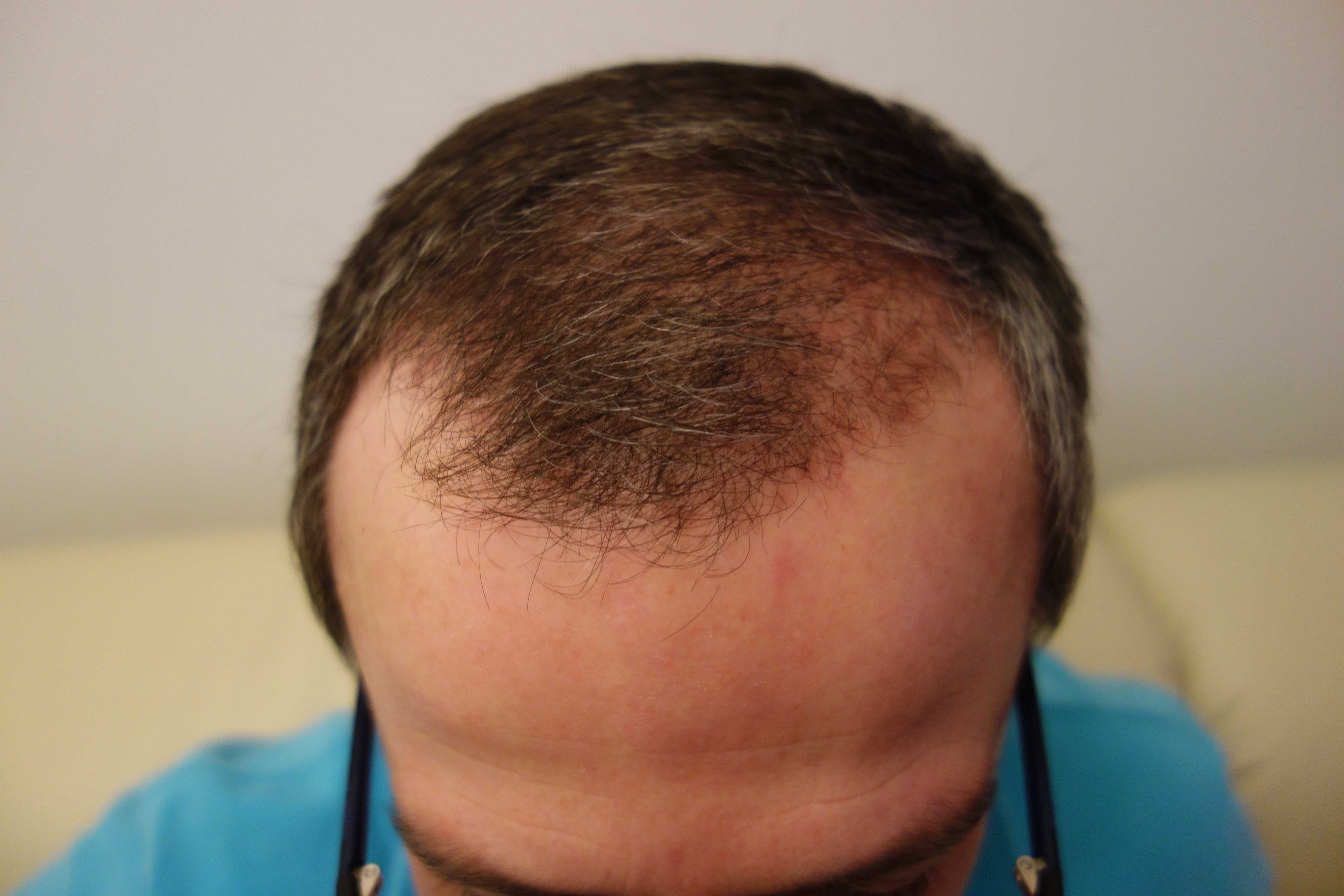 Einnahme von Fin ist nach wie vor ein Thema mit welchen ich mich beschäftige aber derzeit noch nicht für oder gegen entschieden habe, daher zur Zeit noch ohne Hilfsmittelchen auch auf Regaine verzichte ich, da meine Haare aus Erfahrung recht schnell wachsen, was man auch anhand der Bilder erkennen kann.