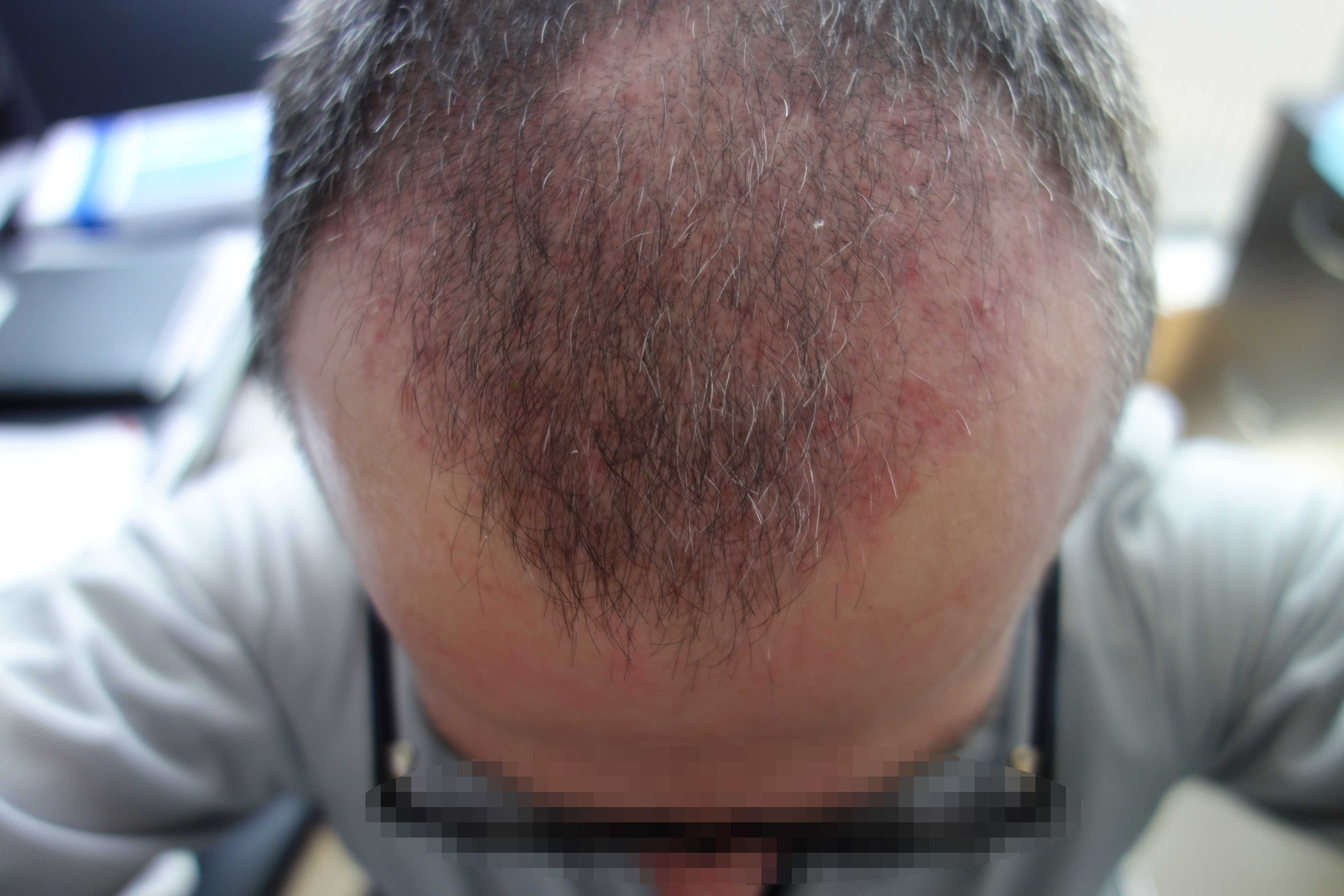 Aktuell ist der Ausfall fast zum Stillstand gekommen und an der HT erinnert nur noch die Narbe und die geröteten Stellen. Der Ausfall hat bei mir unmittelbar nach der ersten Woche begonnen. Seit ca. 1 Woche bekomme ich Pickel auf der Empfangsfläche eigentlich ein gutes Zeichen, dass hier was passiert aber eigentlich viel zu früh. Na ja ich lasse mich überraschen, an mangelnder Hygiene sollte es nicht mangeln. Den Haarkranz habe ich mir durch meine Frau runter schneiden lassen, so dass ich zu Hause nicht so schlimm aussehe, dass jetzt die Narbe dadurch sehr stark zu sehen ist macht mir nichts aus, da ich in der Öffentlichkeit nur mit Hut unterwegs bin. Entlang der Narbe „leide" ich schon beträchtlich an Shockloss aber auch das stört mich aus o.g. Gründen nicht, zumal sich das in den kommenden Monaten „verwächst". Leider habe ich vergessen hiervon ein Bild zu machen, werde das wohl die Tage nachreichen.