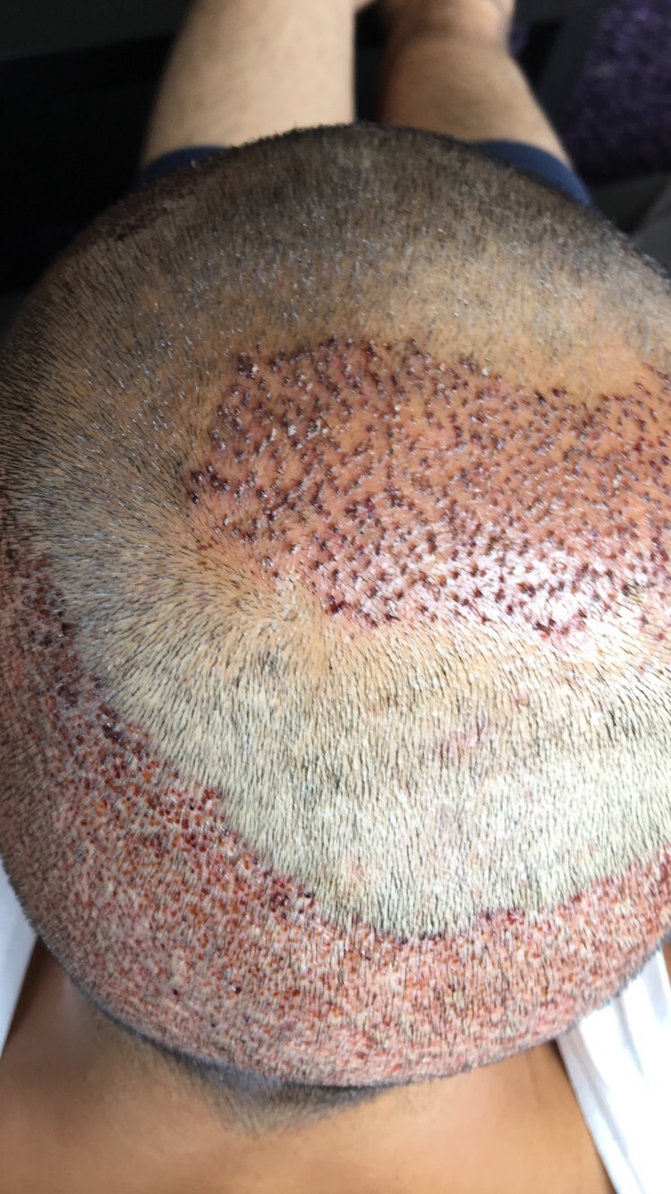 Klar, es sind bei Alex wieder Haare auf dem Kopf. Sie länger wachsen zu lassen um es optisch eventuell ansehnlicher zu machen, wird nicht so einfach sein, da die Wuchsrichtung der Grafts nicht stimmt. Eine Repair kommt wenn überhaupt noch mit teuren Bodygrafts (falls ausreichend vorhanden) die leider auch noch eine schlechtere Anwuchsrate haben in Frage, weil auch noch das Spenderareal komplett aufgebraucht wurde. Man könnte eventuell noch die Implantate wieder entnehmen und in die richtige Richtung einsetzen.