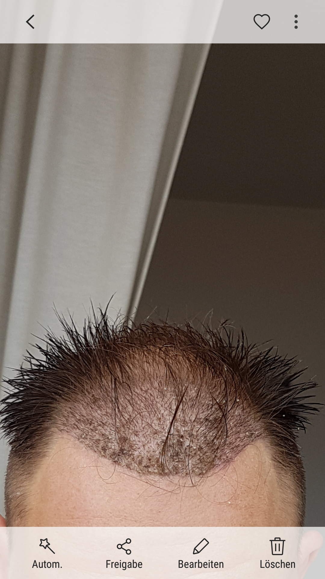 Generell bin ich mit den Geheimratsecken schon sehr zufrieden, die Haare sind auch schon etwas dicker geworden. In der Mitte muss es noch besser werden. ich hatte dazu gestern nochmal Rücksprache mit Michaelis, er meinte, dass ich mir keine Sorgen machen solle, es ist noch viel Zeit bzw. noch relativ früh.