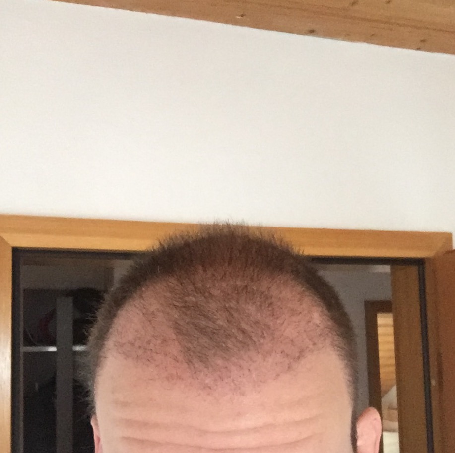also ich lass mir alle 2 Wochen die Seiten und Hinten auf 2mm abrasieren, da sieht man den Spenderleider noch etwas rötlich und nicht ganz so dicht, aber ich muss sagen das ich dort auch alle 2 Wochen einen kleinen fortschritt sehe,,,,,
