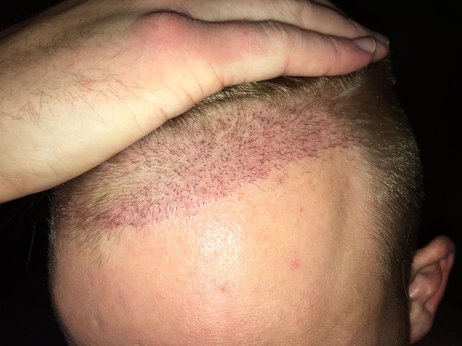 Habe gerade eine Creme auf die transplantierte stelle aufgetragen und gleich vorsichtig weggerieben und dann waren auf dem Tuch kurze neu transplantierte Haare.