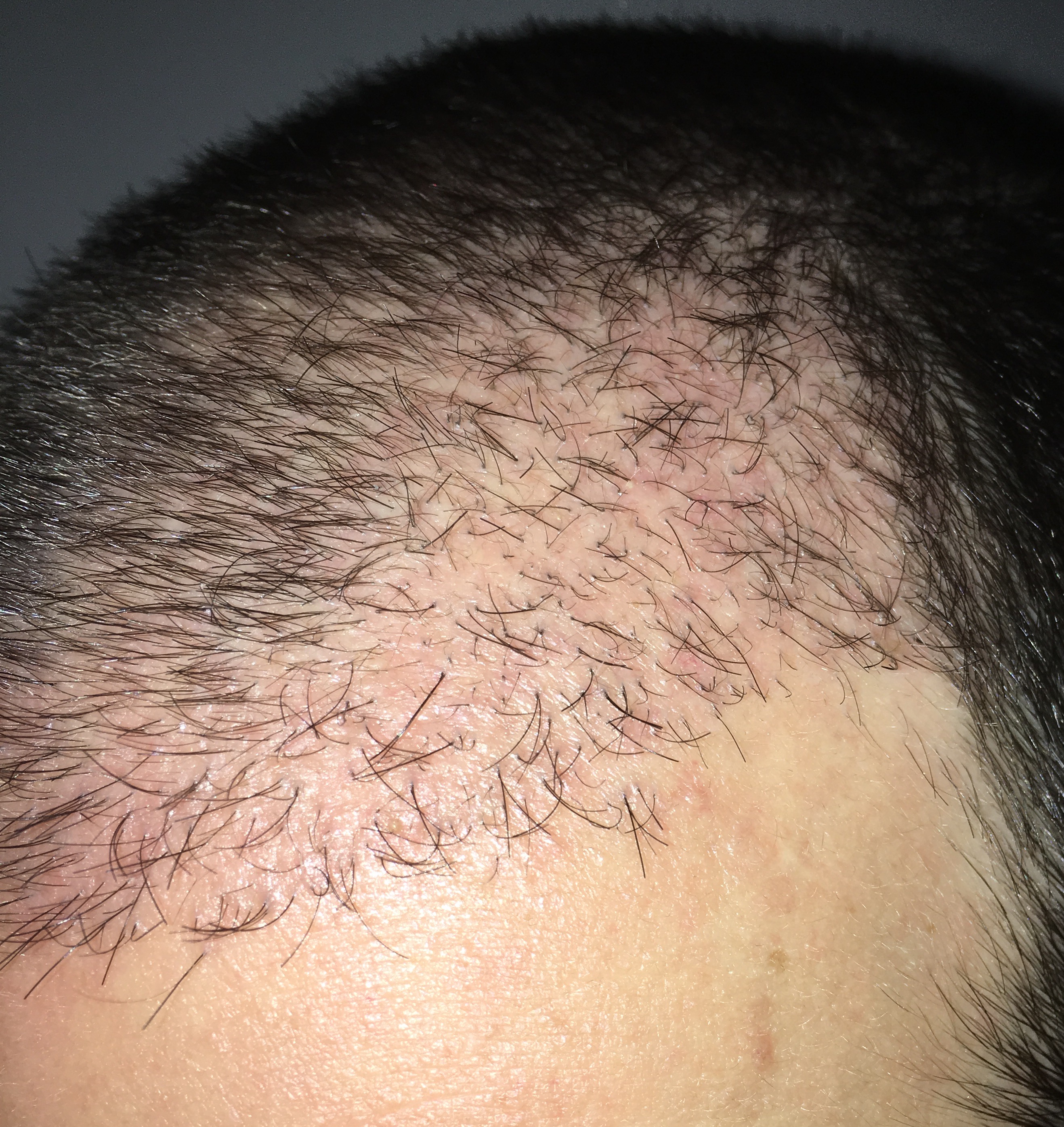 juckreiz nur noch sporadisch, wenn ich lange auf dem hinterkopf liege. rötung sieht man auch immer weniger. schmiere es immer wieder mit aloe vera gel ein, vor allem wenn es juckt- das bringt dann linderung.