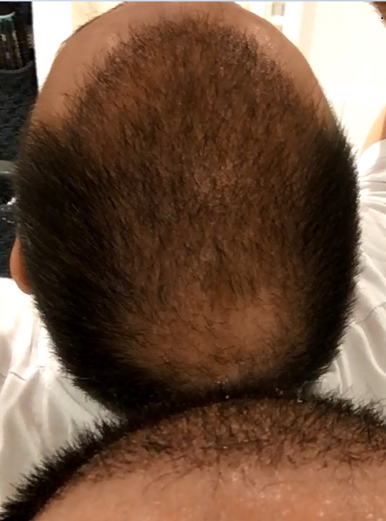 Die Entnahme wurde mit Mikromotor durchgeführt und es sollen 3000 Grafts entnommen und eingesetzt worden sein. Hier könnt Ihr 1 Foto von der damaligen Behandlung sehen. ( Weißer Verband um den Kopf)