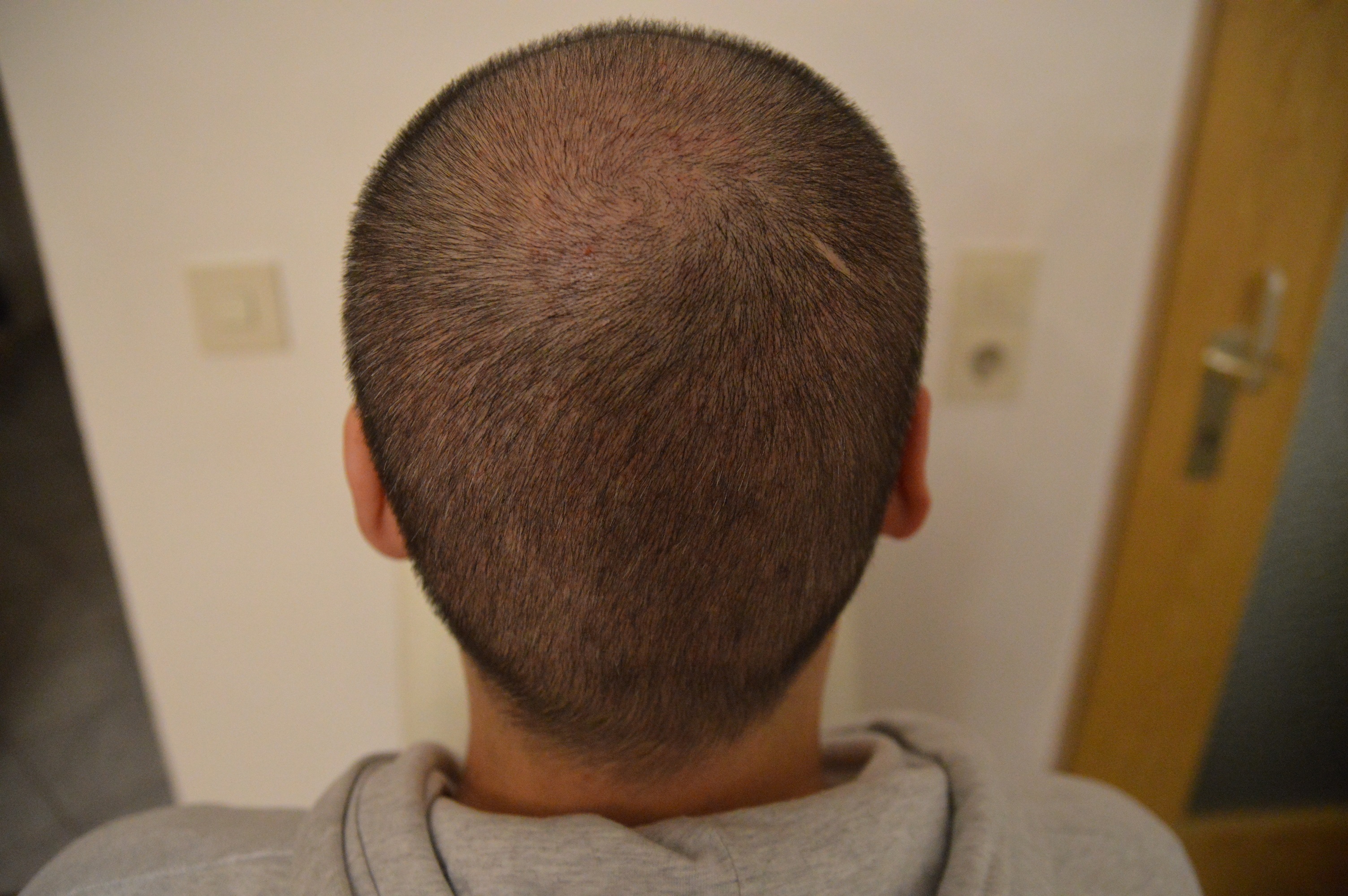 Mein Donor war schon nach einer Woche fit und 10 Tage später war garnix mehr zu sehen. Ich sehe absolut keinen Unterschied. Da die Seiten aktuell schneller wachsen als oben (shock loss alte Haare?) habe ich diese auf 3mm abrasiert(nur den Entnahmebereich Smile ).