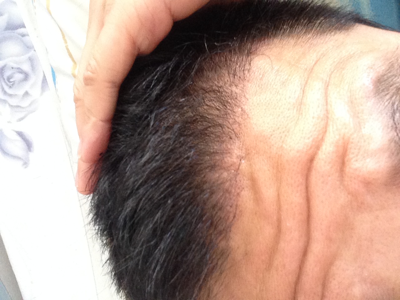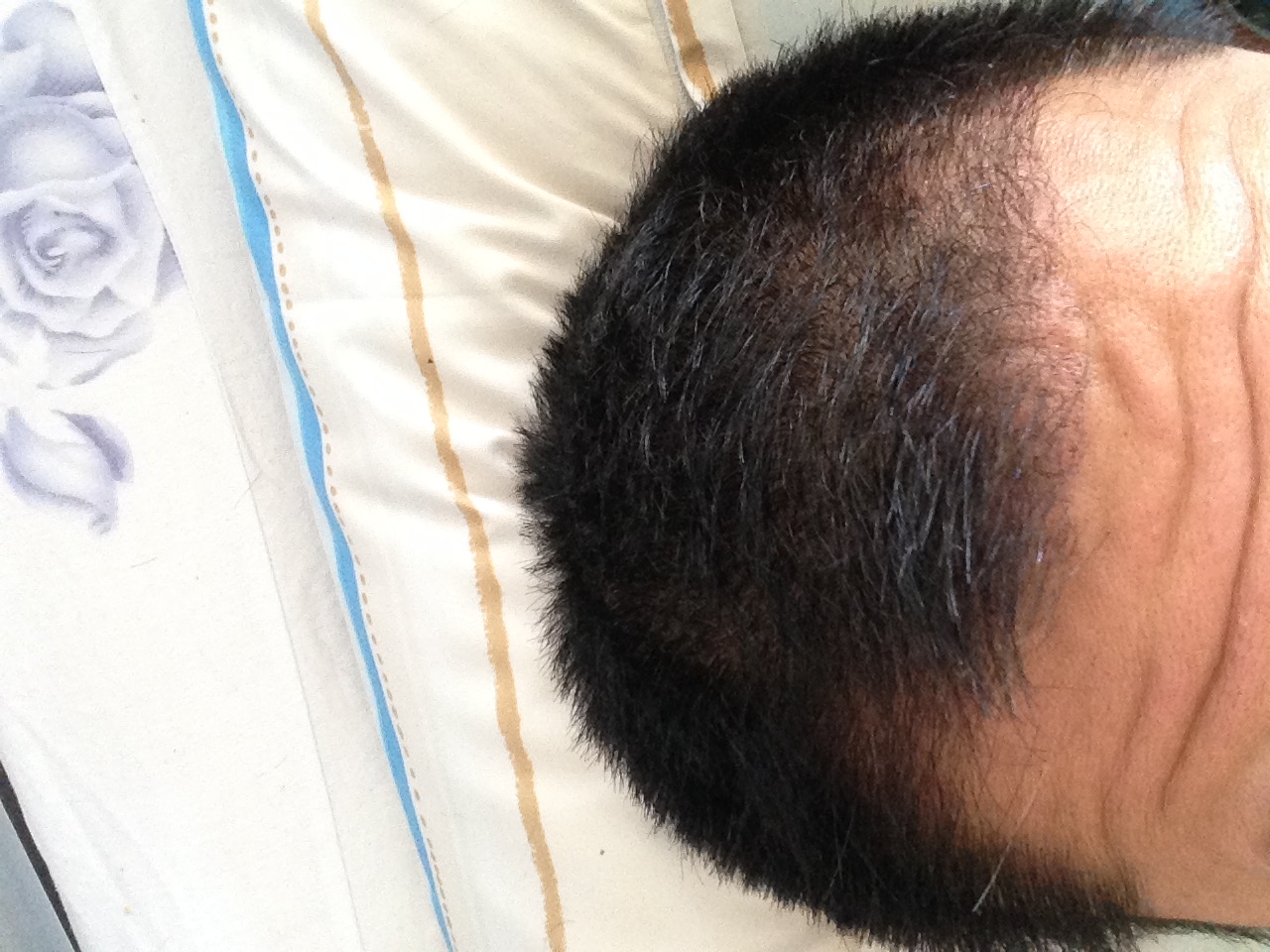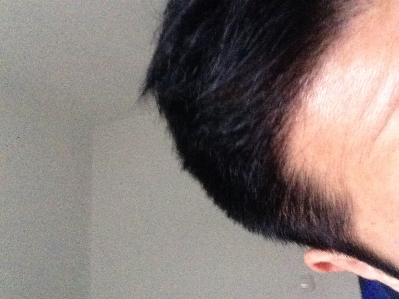 Das Haar wurde zusehends lichter, links (GEheimratsecke) hatte ich schon lichtes, schütteres Haar. Rechts war der Status am schlimmsten.