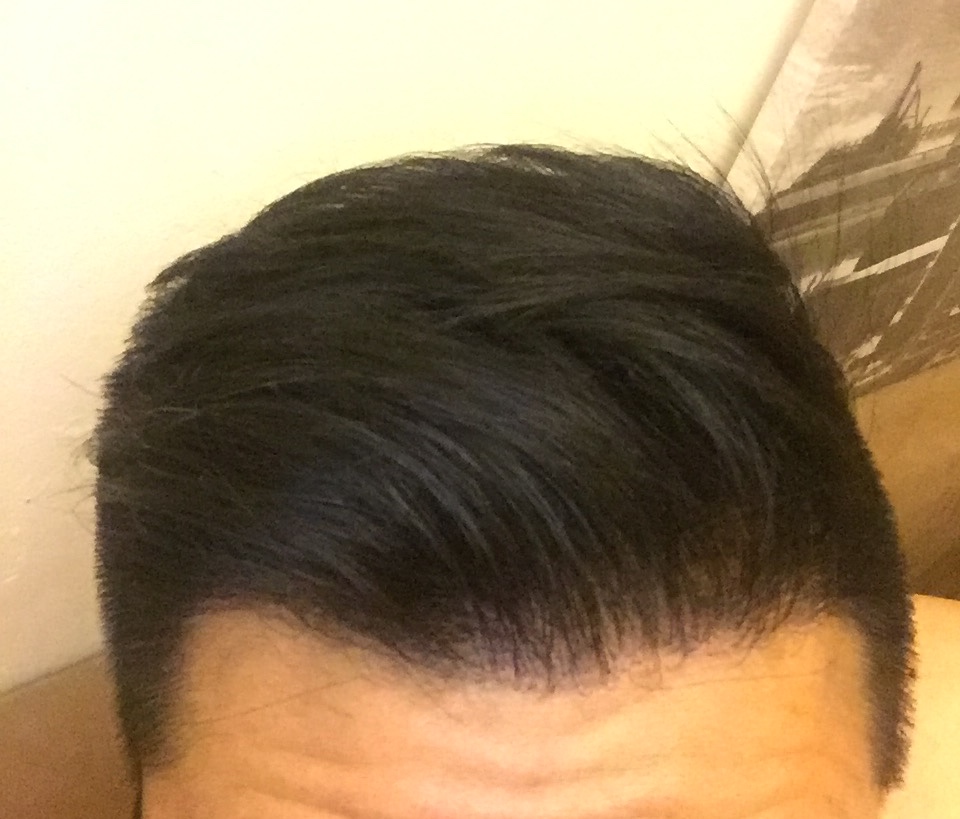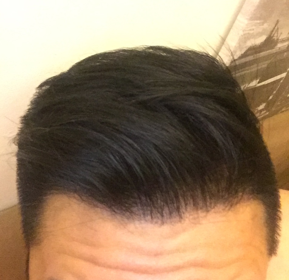 Tatsache ist, dass viele Leute meinen, dass meine Haare voll aussehen. Die Haarlinie wirkt eben und nur im direkten Sonnenlicht sieht es leicht lichte aus. Geheimratsecken sieht man kaum mehr (und das nach nicht mal 4 Monaten!).