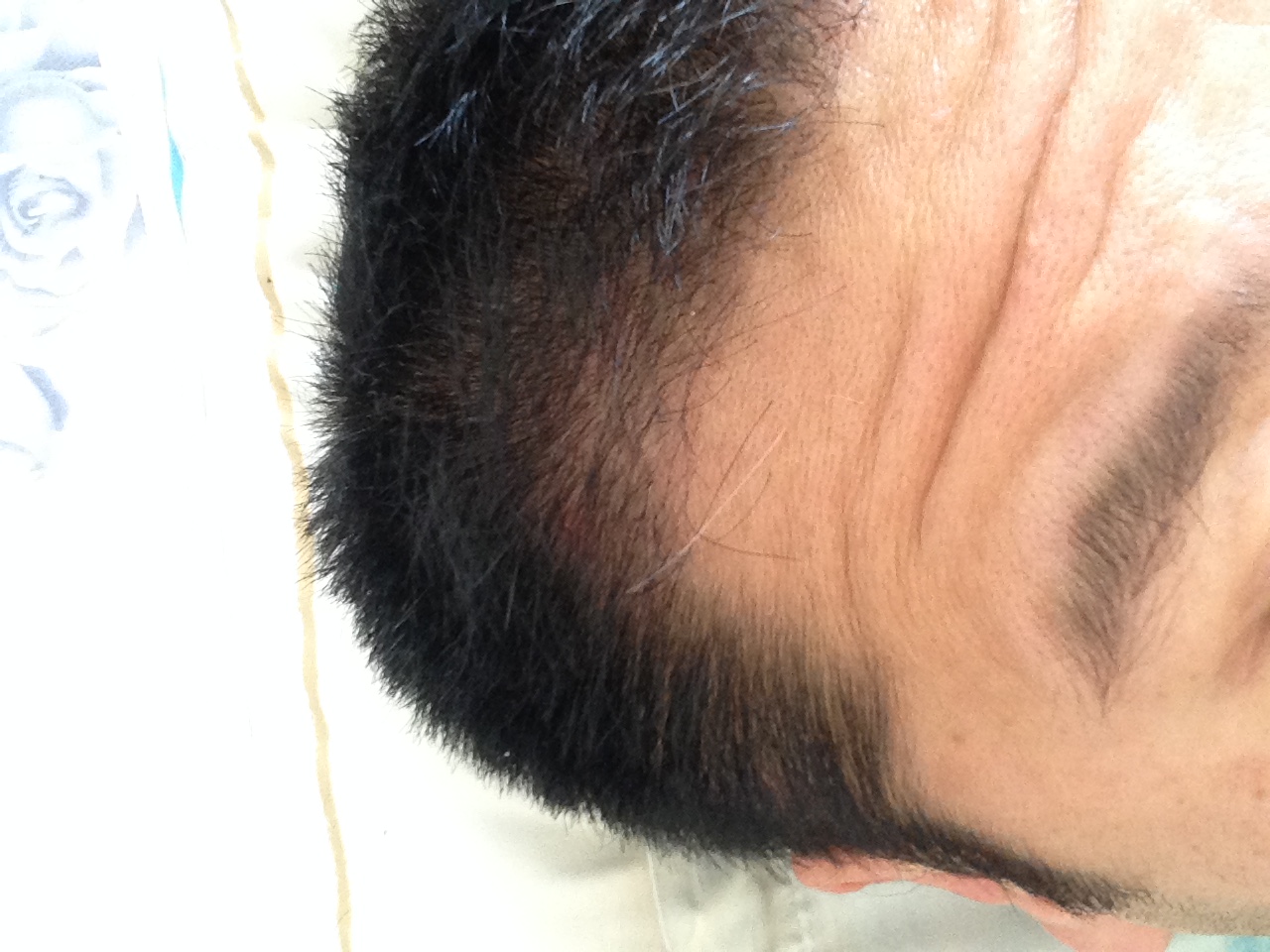 Das Haar wurde zusehends lichter, links (GEheimratsecke) hatte ich schon lichtes, schütteres Haar. Rechts war der Status am schlimmsten.