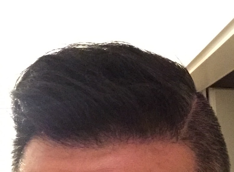 Tatsache ist, dass viele Leute meinen, dass meine Haare voll aussehen. Die Haarlinie wirkt eben und nur im direkten Sonnenlicht sieht es leicht lichte aus. Geheimratsecken sieht man kaum mehr (und das nach nicht mal 4 Monaten!).