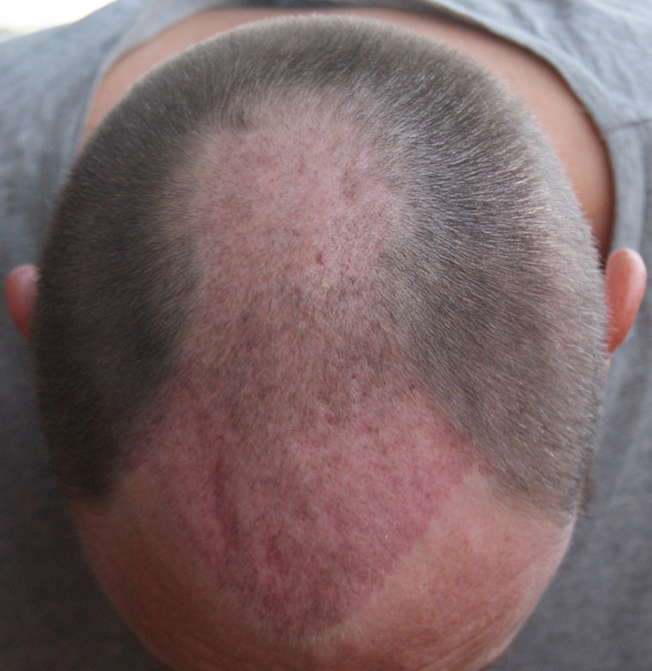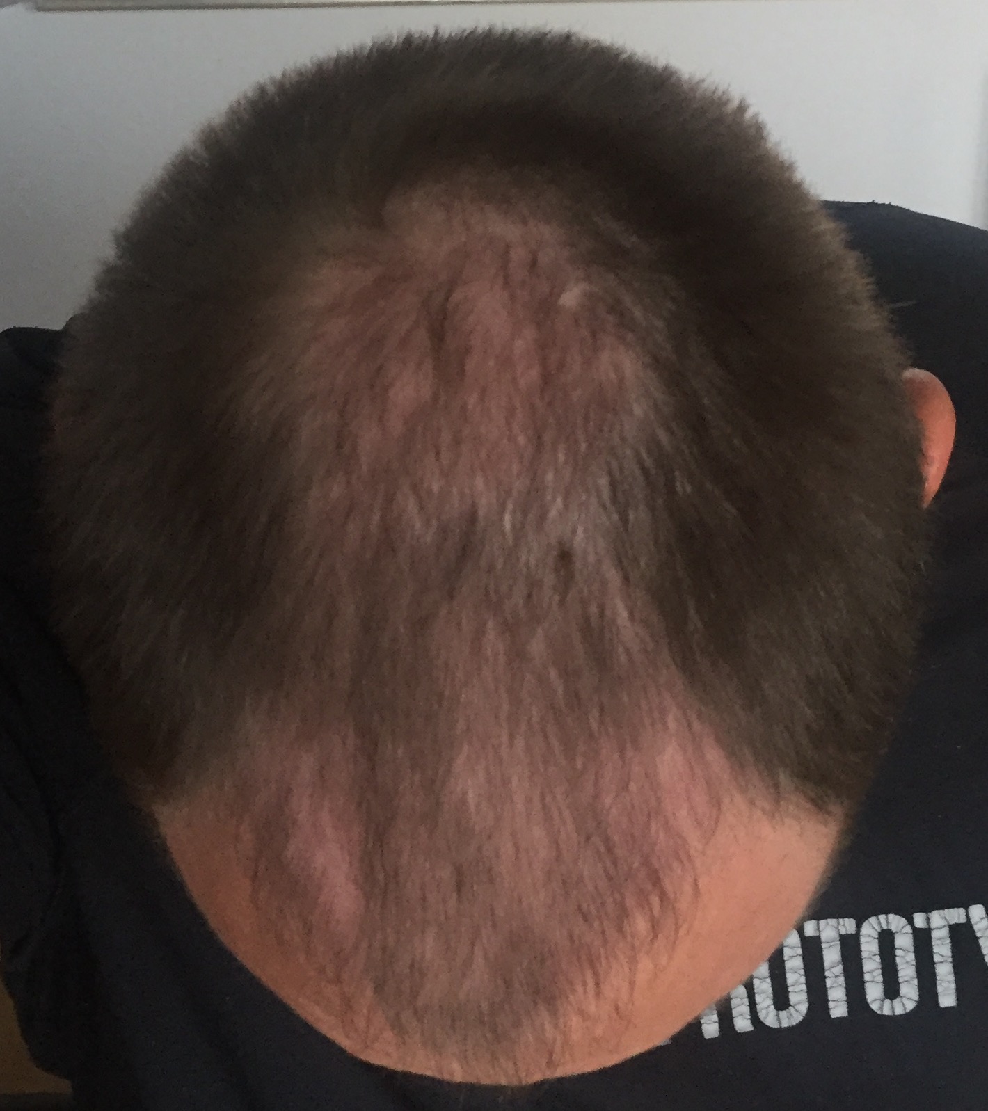 Einzig die seitlichen Spenderbereiche machen mir noch etwas Sorgen, alles noch sehr ausgedünnt (hinten dafür top) - halte derzeit meine Haare auf 6mm getrimmt, ist zwar alltagstauglich so, aber das geübte Auge wird die Punktnarben wahrnehmen.
