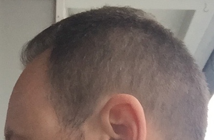 Wie zuvor bereits von den anderen Usern beschrieben, war die Fläche meiner Baustelle halt für die Anzahl der Grafts zu groß, dementsprechend die Dichte etwas mau, weshalb ich mit Haarpuder nachhelfe.