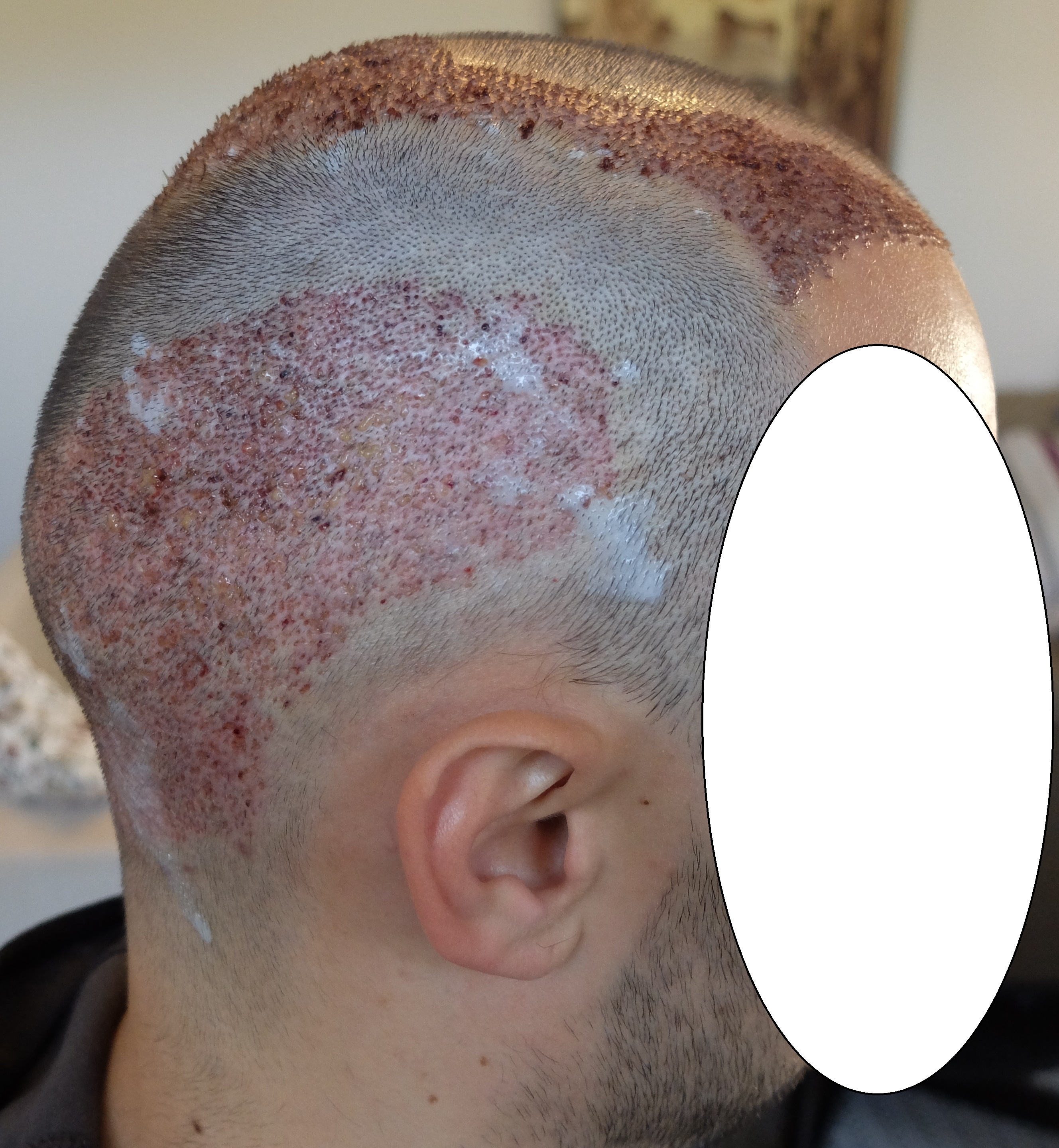 Aber der Heilungsverlauf sieht gut aus. Die Empfehlung, 2 Tage die Haare nicht zu waschen, habe ich auch noch nie gehört. Aber jede Klinik hat ihre eigenen Empfehlungen.