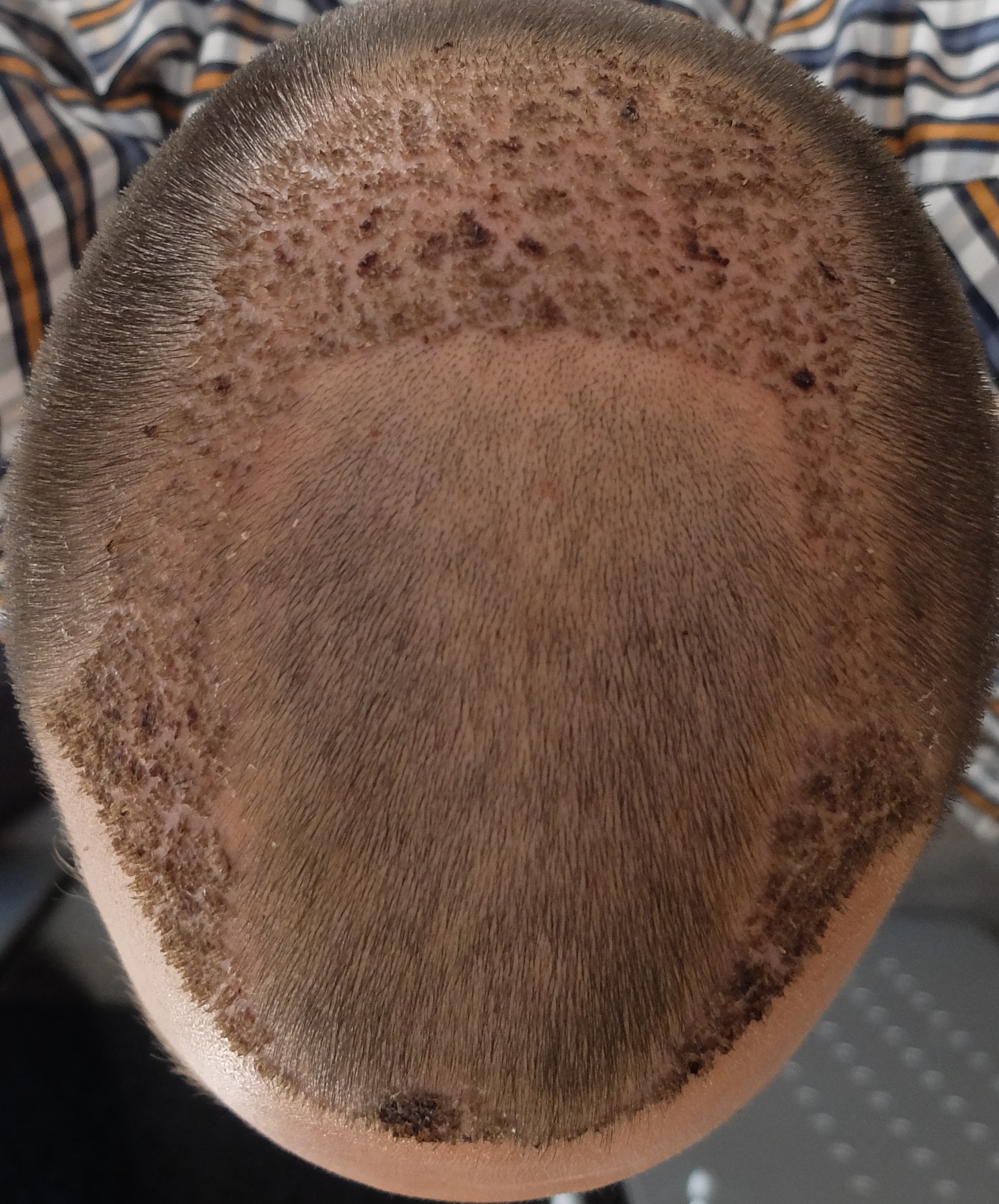 Die eingesetzten Grafts sehen gut aus und mit Ergebnis meinte ich auch den Heilungsverlauf bisher. Allerdings denke ich, dass wenn es weiter so verläuft gut ausschauen wird.