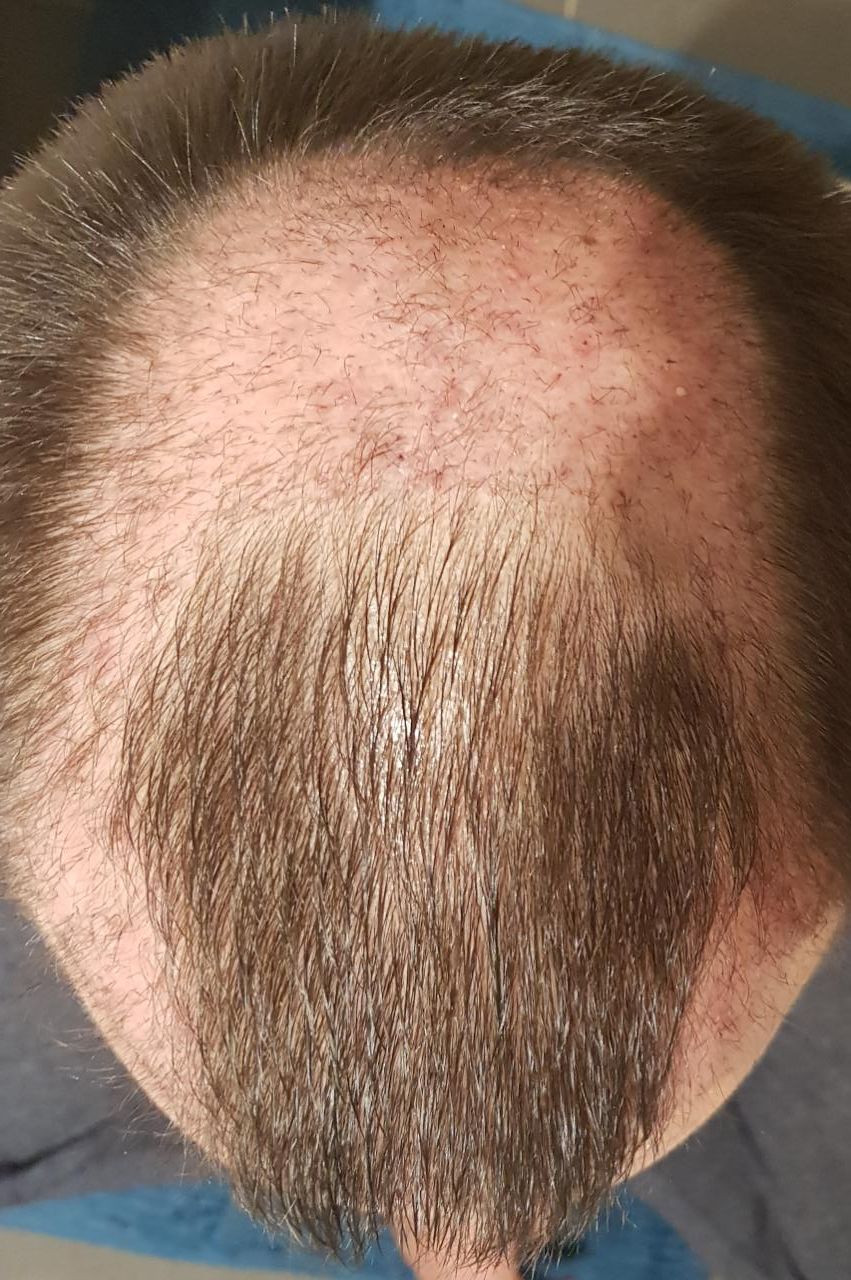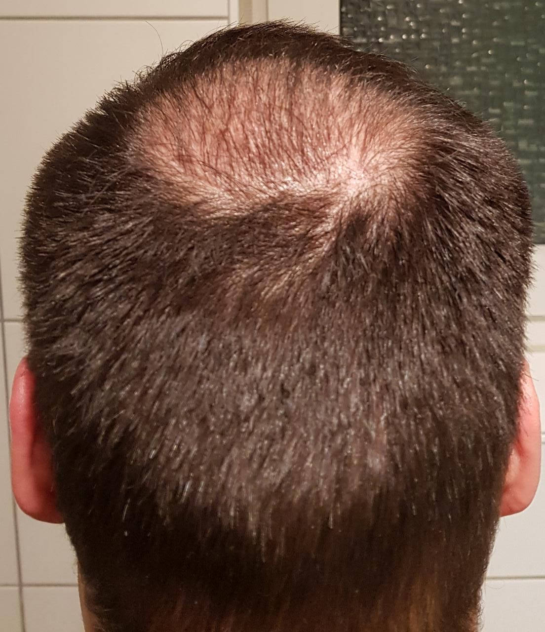 Mittlerweile bin ich von vorne eigentlich schon recht zufrieden und denke auch dass ich mir meine gewünschte Frisur machen könnte sobald ich meine Haare länger wachsen lasse. Die Tonsur ist leider sehr bescheiden. Insgesamt habe ich mir nach fast 5 Monaten mehr erhofft. Ein bisschen was wird vermutlich noch passieren aber ehrlich gesagt rechne ich nicht mehr mit viel mehr...
