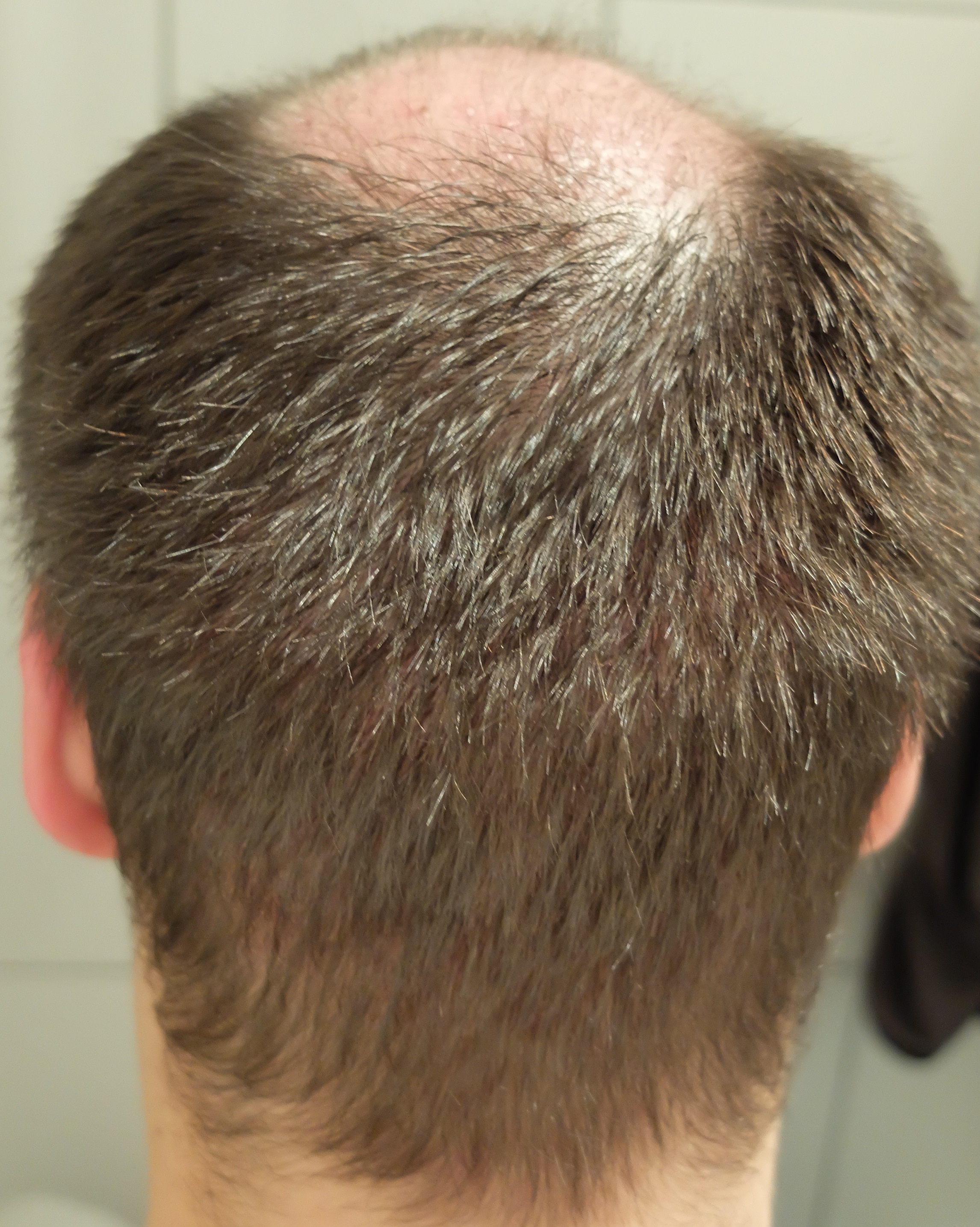 Mittlerweile bin ich von vorne eigentlich schon recht zufrieden und denke auch dass ich mir meine gewünschte Frisur machen könnte sobald ich meine Haare länger wachsen lasse. Die Tonsur ist leider sehr bescheiden. Insgesamt habe ich mir nach fast 5 Monaten mehr erhofft. Ein bisschen was wird vermutlich noch passieren aber ehrlich gesagt rechne ich nicht mehr mit viel mehr...