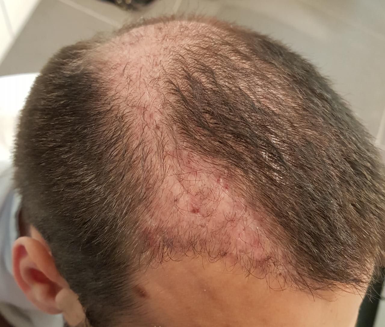 Mittlerweile ist mein Kopf kein schöner Anblick mehr. Meint ihr es sei ok mit einem elektrischen Bart/Haar-schneider alles auf ~5mm runter zu rasieren ? Laut Klinik soll man bis zum Ende bis Monat 3 nur mit Scheere schneiden.